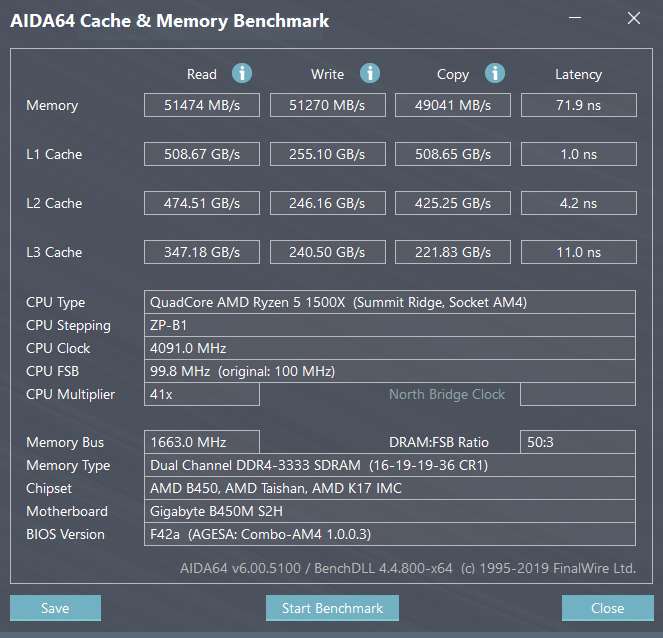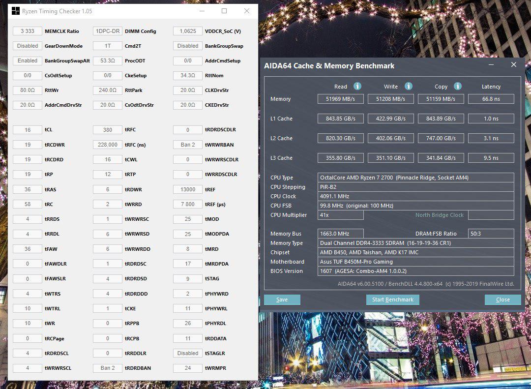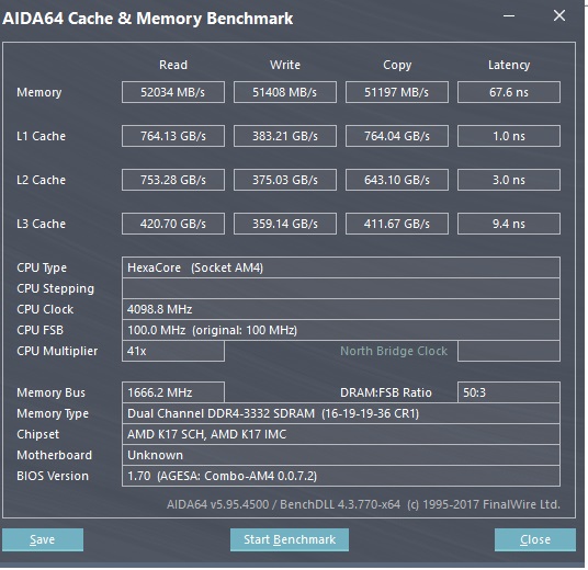 Мой конфиг это с 3333мгц, это результат на не разогнанном 2700, пару дней назад в разгоне тестировал, латенси в разгоне на 4000мгц 66,0нс с этими таймингами, запись чтение и копи те же остались