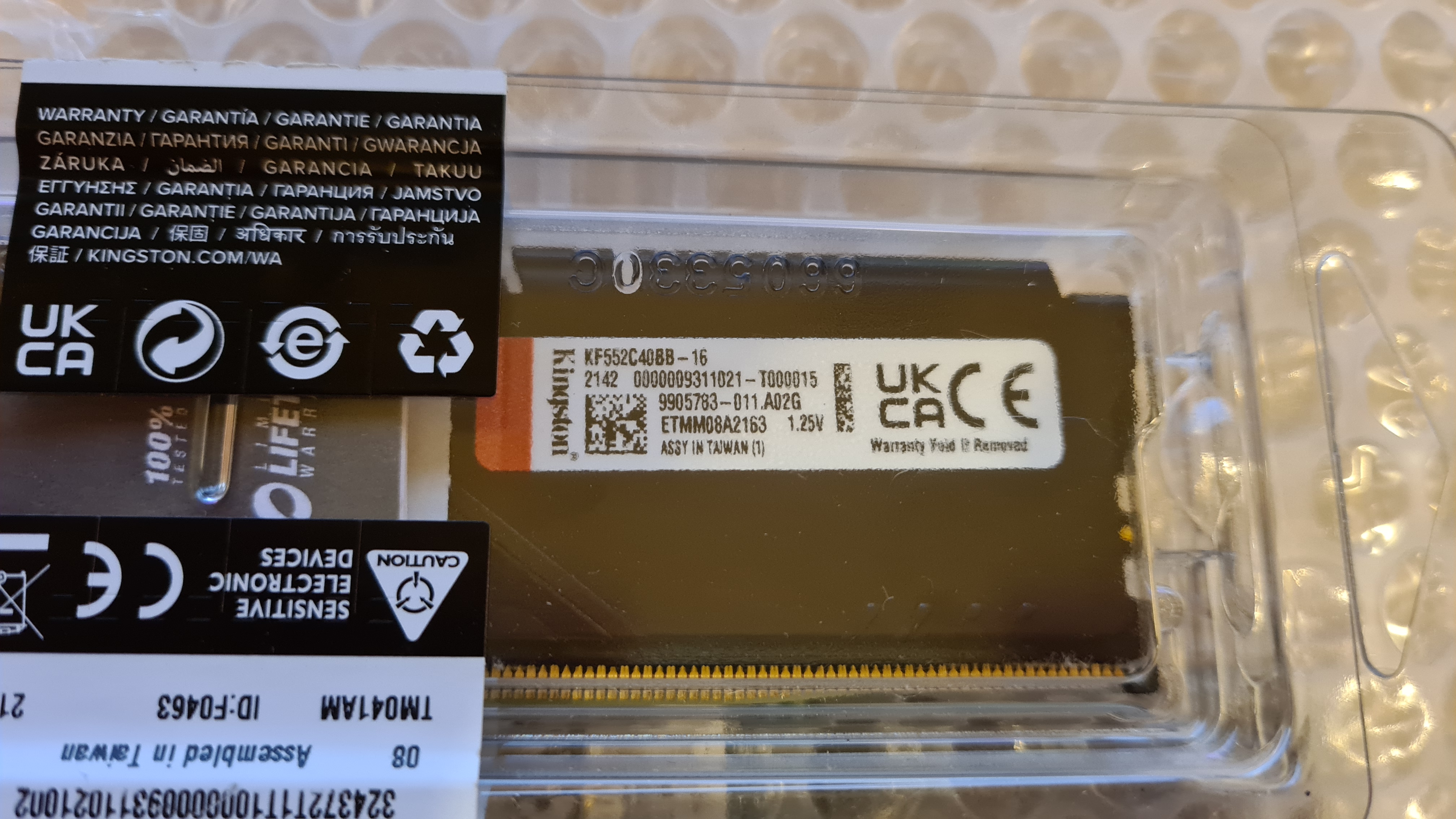 Добавлено спустя 7 минут: 2500K_2 , а смысл? Я не хочу из материнки опять память вытаскивать. Этикетки сфоткаю. У меня в CPU-Z чётко было написано, что в 1 и 3 слотах Micron, а во 2 и 4 слотах SK Hynix. Обе памяти Kingston Fury Beast 5200 МГц.