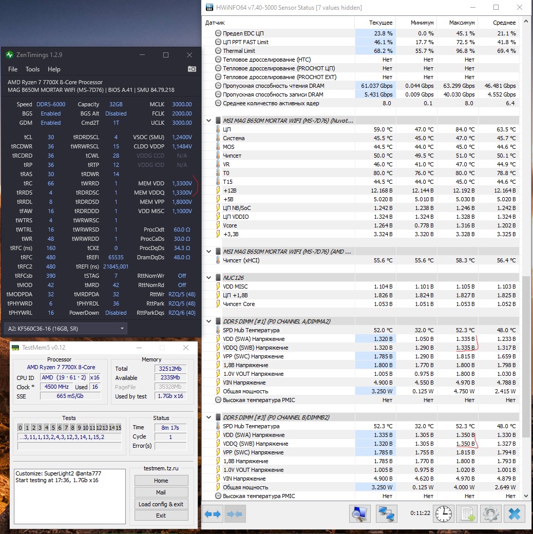 Msi b650i edge мое почтение. Держут марку по разгону озу, вспоминается мой старая z390i edge которая на 8700к память 4800 кочегарила, не зря опять взял ай эджку <3