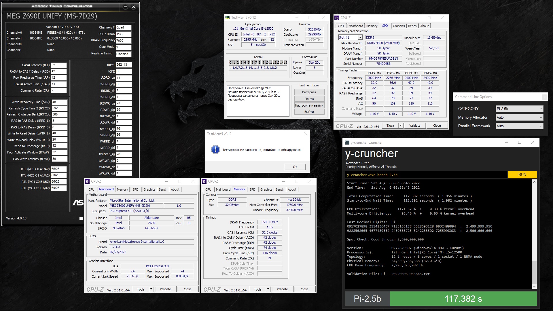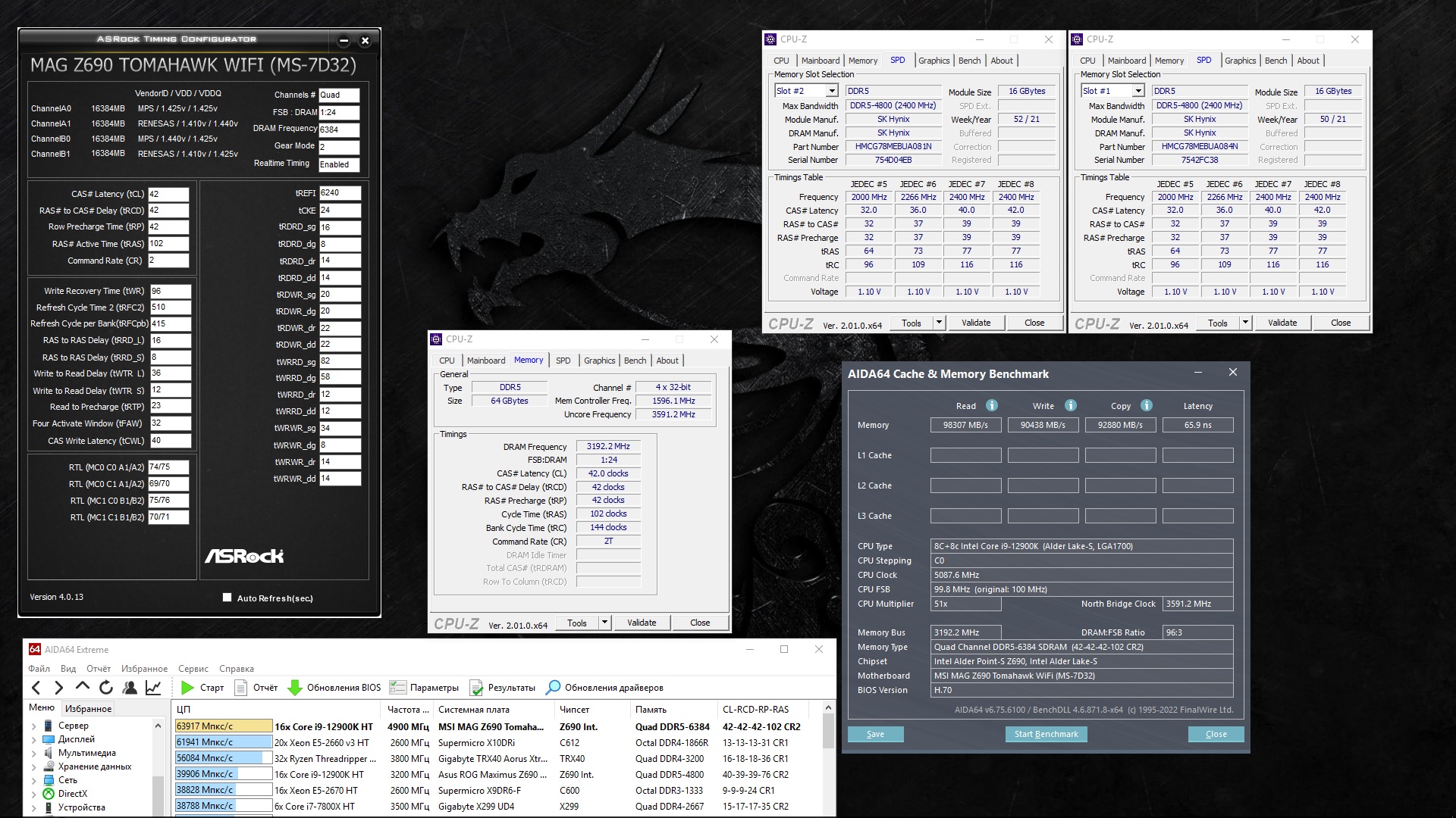 Ради интереса что может алдер и м-die из 4 рангами. Просто бут 4х16 раз есть 4 планки на руках + 4 димм плата. Кп в 12900к у меня послабее чем в 12500 если что. Стаб не искал. на 6400 на авто вольтажи сыплет ошибками. на 6000- 6200 одиночные ошибки - думаю можно покрутить. Ну как-нибудь в другой раз