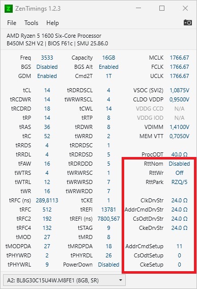 Господа, решил тут поднастроить свои баллистиксы немножко агрессивнее. До этого работали 3600с16 долго. напряжение немного завышено, только настроил, пока тестирую стабильность, потом снижу чуть. 3600с14 не едут на 1.42v, выше задирать не хочу, мать в пике подкидывает напряжение, не хочу выходить за 1.45 даже в пике. при 1.37v в пике видел 1.404, поэтому 1.41 моральный потолок для меня. trc ниже 52 не едет. без gdm не стартует. twrrd 1 надо, упустил это. выделенные параметры не трогал совсем, мать выставила нормально вроде. подскажите, что можно поправить ещё?