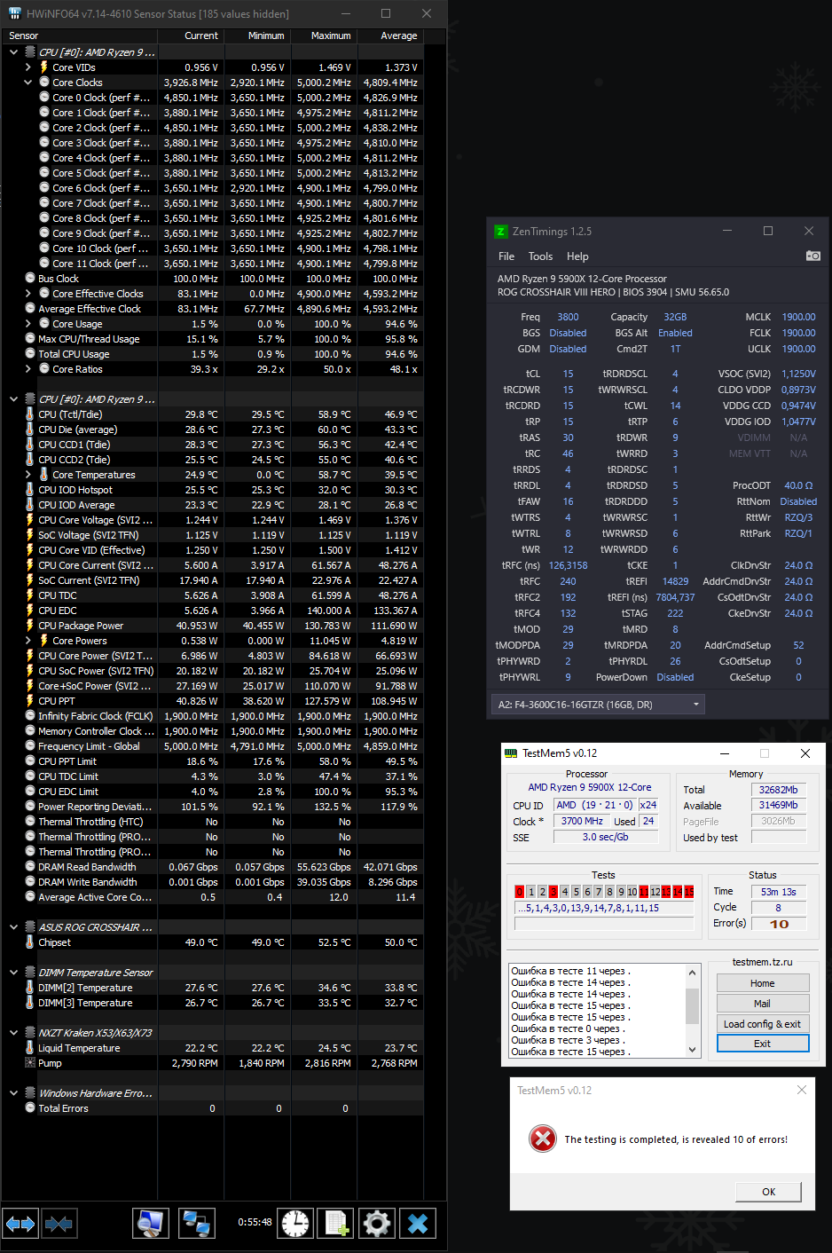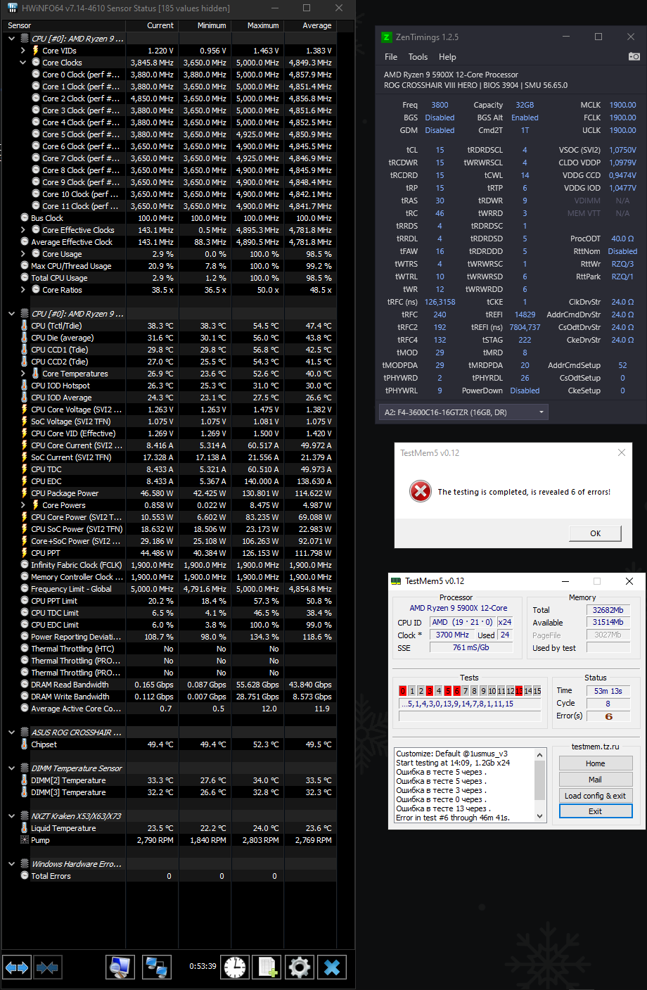 4. Перед настройкой частоты и таймингов рекомендуется установить принудительное охлаждения на модули памяти, особенно для памяти с чипами Samsung B-die, повышение температуры памяти выше 48°, может сопровождаться дополнительными ошибками, не связанными с неправильной настройкой таймингов, что затруднит их поиск и общую настройку памяти.
