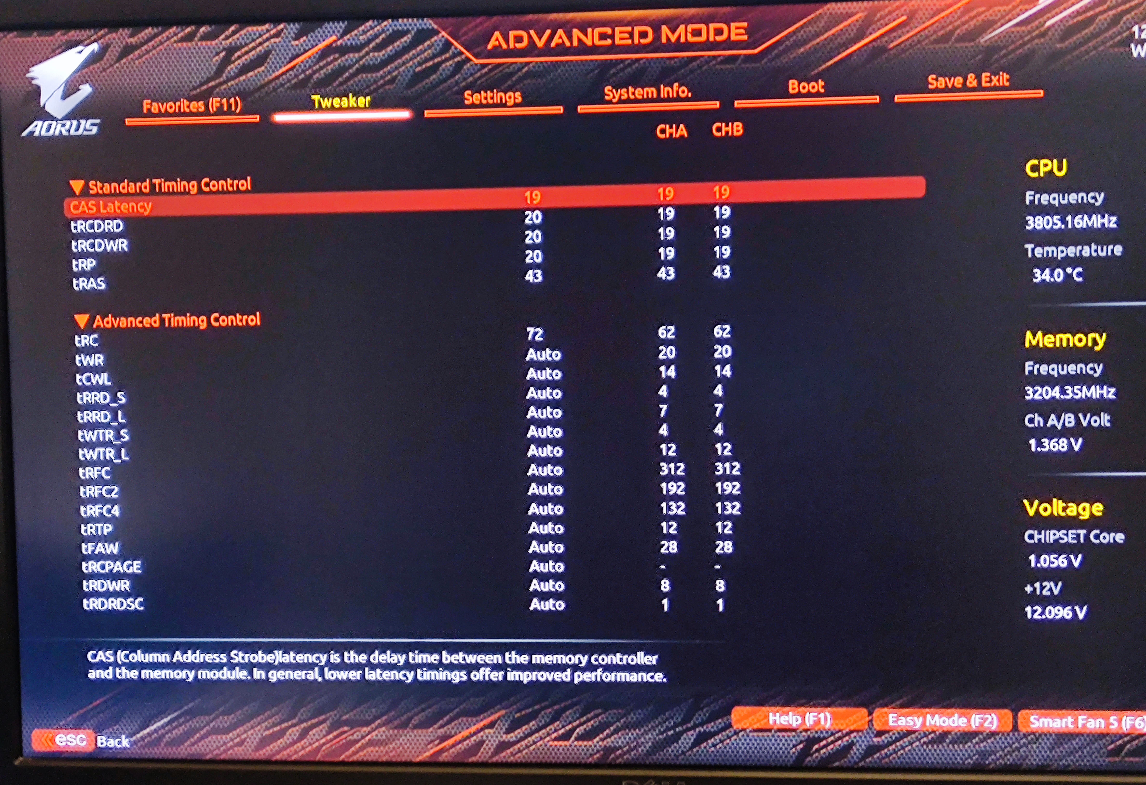 upd. попробовал профиль fast для 3200 mhz микс двух плашек т.к. разные die, выбирал большое значение из двух т.е. между 560 и 512 выбирал 560, не грузит даже биос, вольтаж поднимал до 1.37в, вроде выше 1.355 не хочет даже прошедшую без ошибок систему грузить