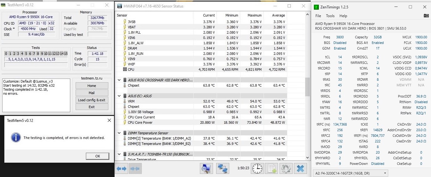 4. Перед настройкой частоты и таймингов рекомендуется установить принудительное охлаждения на модули памяти, особенно для памяти с чипами Samsung B-die, повышение температуры памяти выше 48°, может сопровождаться дополнительными ошибками, не связанными с неправильной настройкой таймингов, что затруднит их поиск и общую настройку памяти.