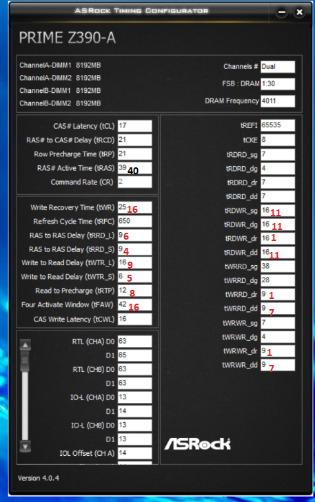 В общем от безделья покрутил свою память, стоят два комплекта CRUCIAL Ballistix Sport LT BLS2K8G4D30AESBK итого 4 планки по 8Гб. Подскажите какие значения выставить для вторичных таймингов? Основные, те что знал, я выставил. Скриншот прилагаю.