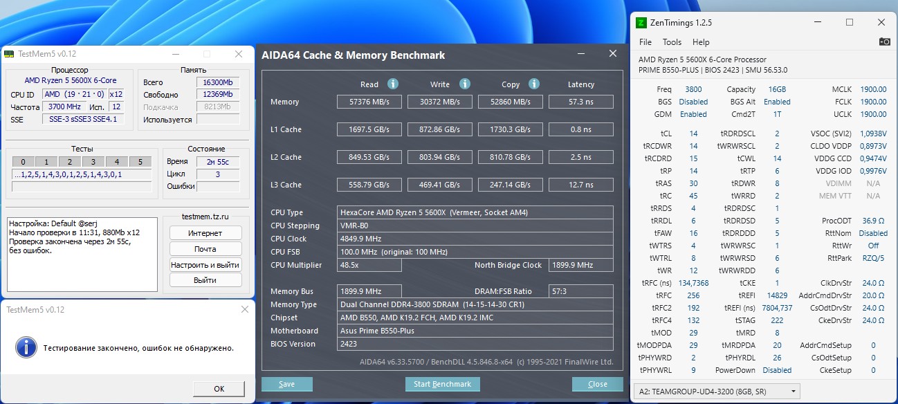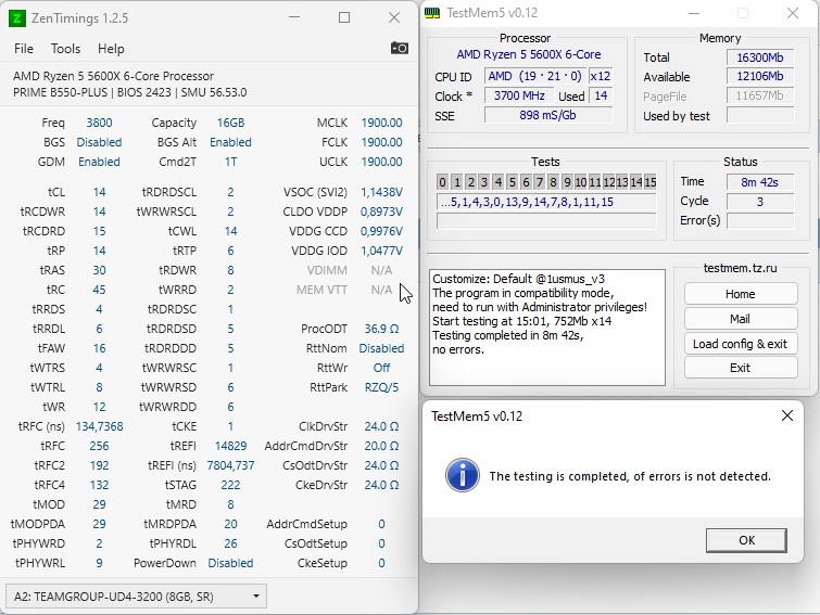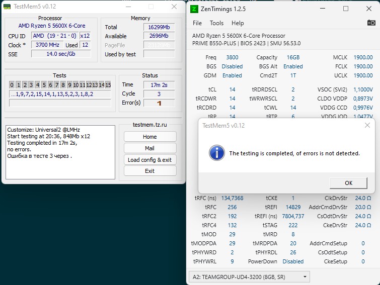 3800cl14 при 1.55В - только так все проходит без ошибок