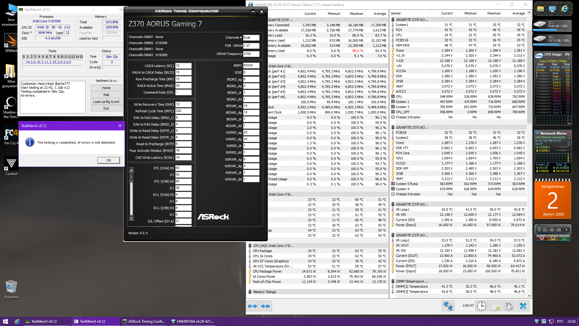 Добрый день, долго сидел на ддр3, и вот перешёл на ддр4. И вопросов много появилось..... память патриот 3866 xmp, проц 10700к, мать strix-e z490. Собственно первый вопрос тайфун не работает на z490? При нажатии реад вылетает ошибка. Тоже с асрок таймингами(но тут вроде человек писал что нужно ставить не последнию версию). А с тайфуном вообще беда..... если верить обзорщикам там стоит самсунг b-die. Выставил 1.35в 4000 18-18-18-36, стабильна на 100%. Комплект хорошо откликается на поднятие напряжения. Как лучше дальше снижать тайминг сначала, скажем до cl 16 и искать максимальную частоту, или наоборот выкрутить скажем cl 19 и искать максимальную частоту? Я смотрю тут мнения разошлись, безопасно напряжение выше 1.4 в на 24/7?