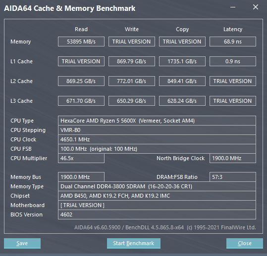 Добрый вечер! The KMS, подскажи, пожалуйста, можно поджать тайминги для снижения задержек ? 68,9 ns не дофига ли ? TM5 проходит, в тесте под охладом в районе 50 градусов. Ryzen 5600x 4.65@1.225v.