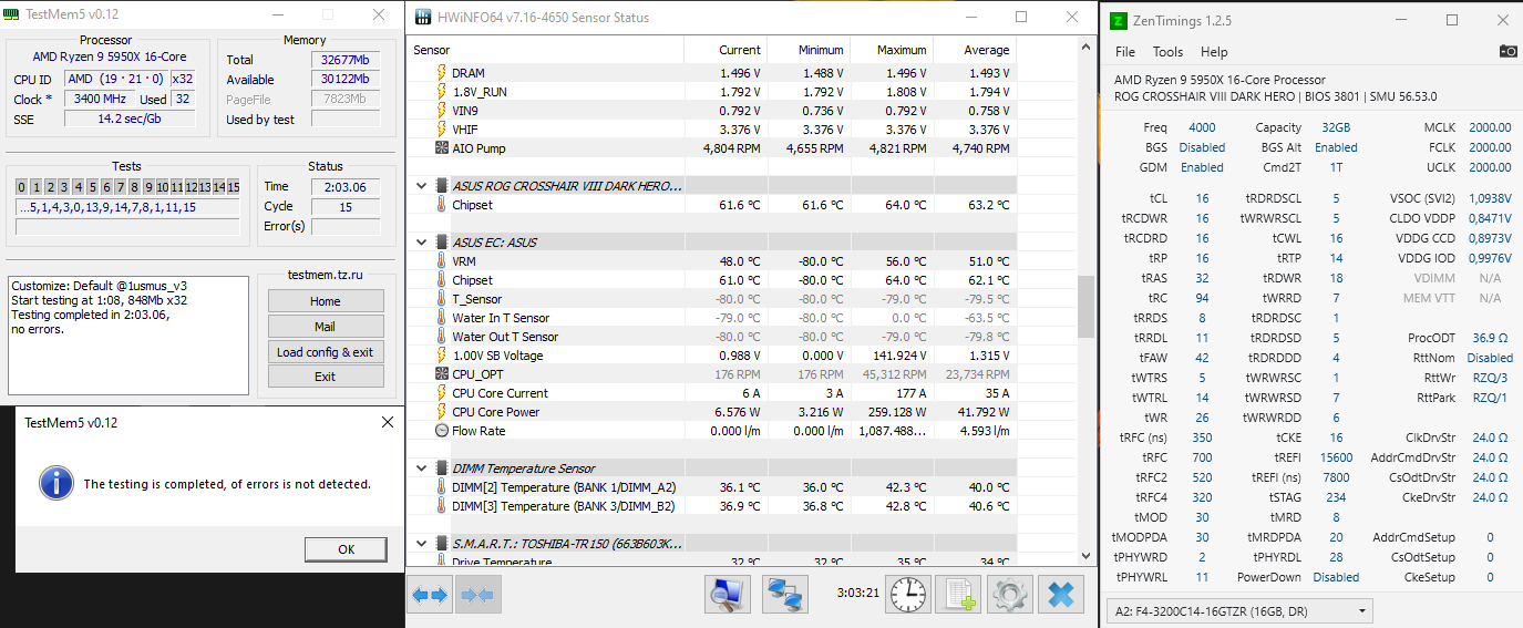4. Перед настройкой частоты и таймингов рекомендуется установить принудительное охлаждения на модули памяти, особенно для памяти с чипами Samsung B-die, повышение температуры памяти выше 48°, может сопровождаться дополнительными ошибками, не связанными с неправильной настройкой таймингов, что затруднит их поиск и общую настройку памяти.