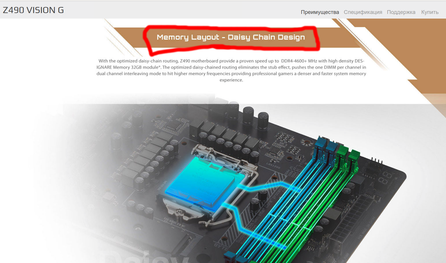 Разводка шины DRAM на материнской плате - Daisy Chain, T и I-топология T-топология - расстояние дорожек от процессора до модулей одинаковое, но при этом общая длинна дорожки длиннее, чем у других топологий. Хорошо себя проявляет при установке модулей ОЗУ во все слоты, т.е платы с Т-топологией лучше работают с четырьмя модулями и хуже — с двумя. Daisy Chain (иногда называют F-топология), - слоты последовательно сидят на одной дорожке. Соотношение сигнал/шум при установке по модулю на канал пары модулей лучше, чем у Т-топологии, но, при работе в паре контроллеру ОЗУ, сложно выставить параметры шины таким образом, чтобы они одинаково хорошо подходили двум модулям, что делает разгон чуть хуже при установке модулей во все слоты. Платы с топологией Daisy лучше работают, когда установлены два модуля из четырех (строго по инструкции к мат. плате) и соответственно хуже — с четырьмя модулями. I-топология - один модуль на канал, лучший разгон ОЗУ (к примеру 2-х слотовая Asus Maximus XIII Apex или MSI MEG Z590I UNIFY). Но избыточный для неэкстремального применения.