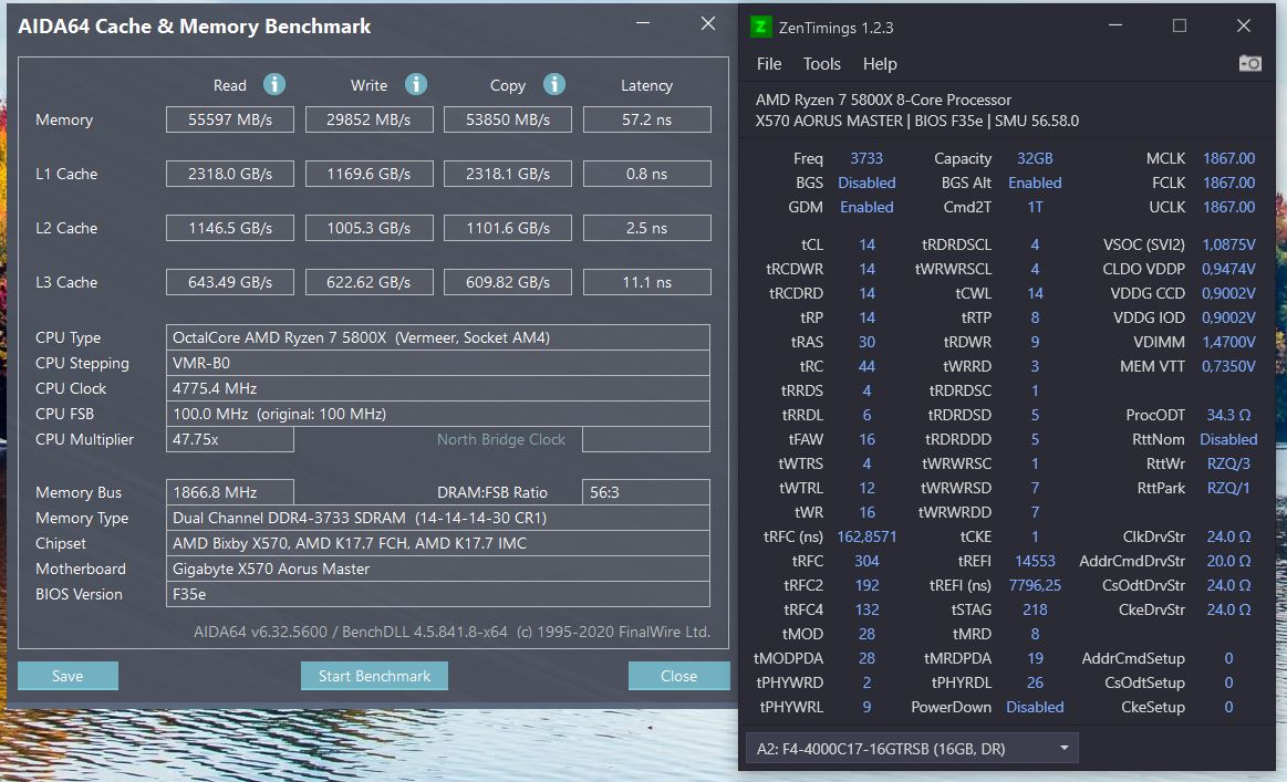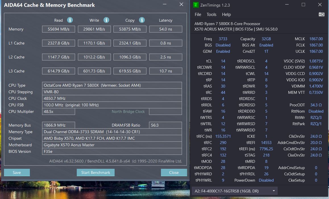 Пока попробую еще поковырять, возвращаясь предыдущим таймингам, чтоб уложиться по напряжению до 1.45 (стояло 1.43 в идеале) как мне кажется безопасное ,т.к. 1.49 много и только с доп. обдувом. Обидно частота 3800 дает в идеале до 60ГБ/с ,а 4000 до 64ГБ/С , а со своими до 3733 не идеальными чувствую до 55ГБ/С хотя бы с таймингами подтянуть латентность на постоянку стабильную работу.