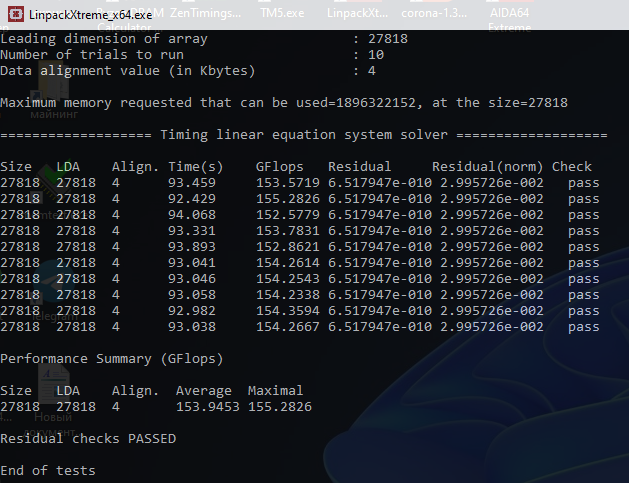 Кстати, кто подскажет, в чём заключается "экспериментальность" последних, больших объёмов памяти в Linpack Xtreme? Может оная экспериментальность сама по себе как-то на успех теста влиять? Скажем, 10гб проходят, а "14 GB (experimental)" то все проходят, то валятся? В прошлом запускал линпак только на 16гб памяти из-под линуксовой флешки.. хотя там тоже были экспериментальные пункты