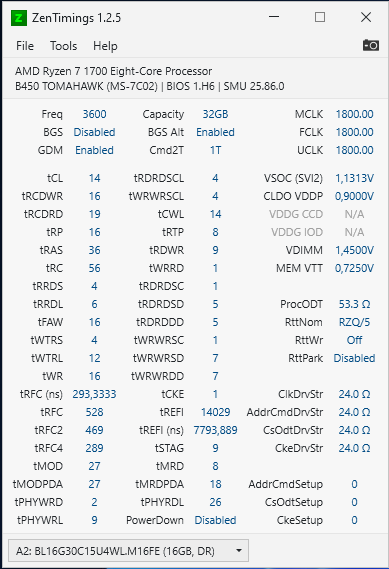 The KMS я точки замера мультиком замерял, да и в биосе выставляешь, 1.41 к примеру при повторном загрузке биоса можно увидеть показания напряжения на памяти , так там 1.44 будет в софте как раз столько сколько я выставил, мультик не удобно было замерять в корпусе, но около +0.02 от той что выставил. trfc латентность хорошо снижает, так попробую с вернуть екас и протестю сl14. Балаго времени параметр проверить не долго, даже trfc с 304 и с 312 первый тайминг на 14 без повышения напруги не хочет, trfc2 и trfc4 на авто стоят. На cl15 не ставил тогда нужно и откл. GDM и еще подбирать....
