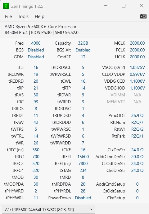 Привет. Для поиска таймингов использовал dram calculator. Чипы: Micron E-die. Напряжение на DRAM - 1.4, остальные напряжения взял с шапки, оттуда же взял все что связано с сопротивлениями. И если я не планирую отключать GDM нужно ли вообще трогать сопротивления? С такими настройками TM5 с конфигом 1usmusV3 прошёл успешно 8 циклов. Посоветуйте, что можно или нужно еще подкрутить, если такое имеется.