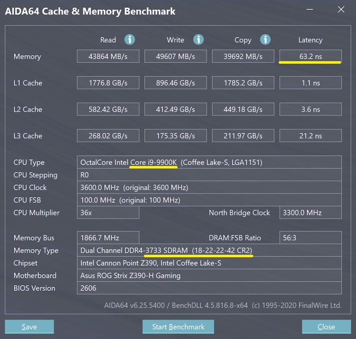 Частота и тайминги Основные показатели скорости памяти. Чем выше частота памяти, тем лучше. Однако гнаться за частотой во вред таймингам не имеет смысла (и наоборот). Выбор частоты на DDR4 возможен от 2133 до 5333 Мгц. Частоты выше 4400 Мгц доступны как правило только на определённых оверклокерских платах и с отборными модулями (а также с хорошим контроллер памяти процессора, который сможет подобное). Хорошей частотой в разгоне является 4000-4400 CL17 и ниже, выше уже могут выше только отборные модули. Для платформы AM4 частота оперативной памяти особенно важна, т.к. к ней привязана внутренняя шина передачи данных Infinity Fabric (работающая на половине частоты оперативной памяти). Дело в том, что эти многоядерные процессоры состоят из двух модулей по несколько ядер, которые взаимодействуют между собой через шину под названием Infinity Fabric – а она тем эффективнее, чем быстрее у вас ОЗУ. Частота влияет в первую очередь, но это не единственный фактор. В связи с этим очень желательны модули, которые в разгоне могут достичь хотя бы частоты 3200, при этом частота Infinity Fabric будет уже вполне удовлетворять потребности процессора. Частоты выше также растят производительность, но требуют бОльшие вольтажи, лучших материнских плат и отбора памяти. Прирост от 3200CL14 -> 3466CL14 есть, но как правило настолько затратный по времени, что не покрывает затрат на его достижение. Хотя сейчас, ситуация лучше и уже многие Hynix\Micron могут взять 3200\3333 на AM4, B-die уверенно работает на 3600-3800. Одинаковая память на более низких таймингах (при одной частоте) будет эффективнее. Т.е. 3200 CL14 > 3200 CL16, как пример. При правильной настройке вторичных и третичных таймингов, можно «добрать» еще до 45% производительности в синтетике и до 25% в играх. Таблицу задержек в наносекундах можно посмотреть тут.