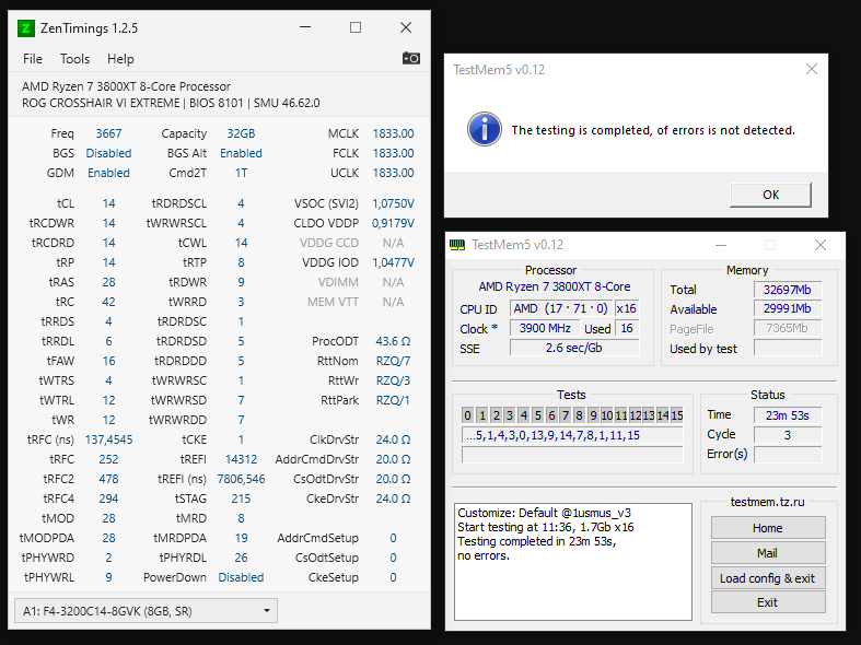 3800XT, Crosshair VI Extreme и 4 планки по 8гб g.skill 3200cl14.