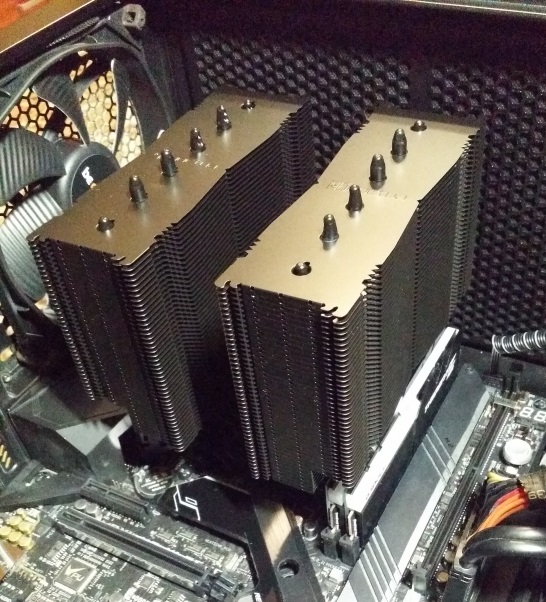 Sergey_Lev, У этого кулера 2 больших вентилятора по 140 мм. Если устанавливать оба, то память с радиаторами не встает. Можно не ставить один из вентиляторов, но тогда процессор будет перегреваться под нагрузками.