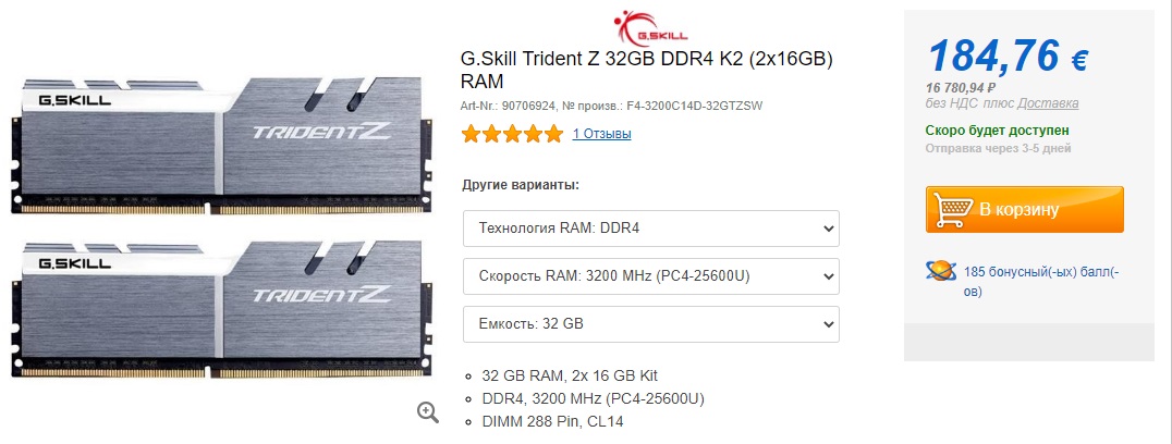 Если финансово вы не ограничены и хотите получить модули с максимальным разгонным потенциалом на чипах Samsung B-die, то ваш выбор: 2х8 Гб F4-4000C15D-16GTRS, F4-4000C15D-16GTRG и F4-4000C15D-16GTZR F4-4266C17D-16GTZRB / F4-4266C17D-16GTRSB F4-4400C17D-16GTZR / F4-4400C17D-16GTRS Самый ТОП: F4-4000C14D-16GTZR / F4-4000C14D-16GTRS / F4-4000C14D-16GTRG / F4-4000C14D-16GTES / F4-4000C14D-16GTEG 2х16 Гб F4-4266C17D-32GTRGB и F4-4266C17D-32GTRSB F4-4400C17D-32GTRGB и F4-4400C17D-32GTRSB Любые F4-3600C14D-32GT (в конце маркировки не должно быть "C", буква "A" свидетельствует о том, что модули будут "ровными" первичными таймингами 14-14-14 вместо 14-15-15) Самый ТОП: F4-4000C14D-32GTEG / F4-4000C14D-32GTES
