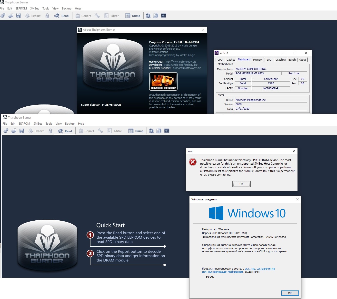 По поводу работоспособности Thaiphoon Burner - у меня на Z390 он точно работает, но там стоит не самая последняя версия. Как доберусь до того компа, то проверю запуск разных версий и прикреплю в шапку ссылки на них с описанием каждой.