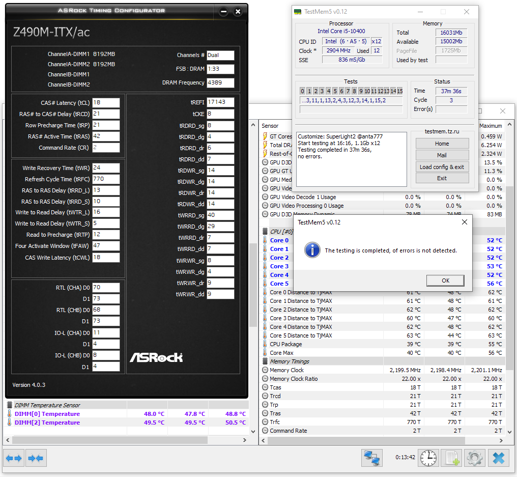 Завел свои микроны на 4400 18-21-21-42 CR2 с напругой 1.45, все остальное в авто, пока что прогнал легкий конфиг TM5. Так вот вопрос: стоит ли вообще пытаться ковырять их на такой частоте или с ними ничего с нормальными таймингами не выйдет? У кого-то здесь есть или были микроны, работающие на такой частоте?