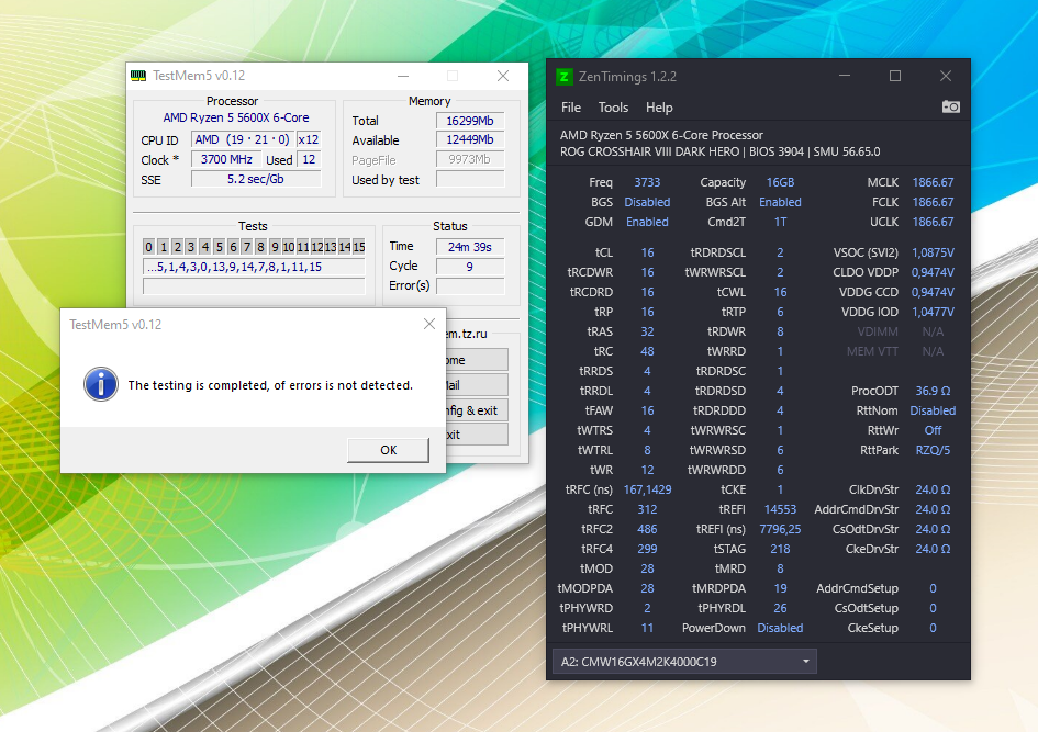 Всем привет. Подскажите, что можно еще улучшить. Чипы Micron rev. B, напряжение 1.37, IF 1900 не едет никак (5600х с активным CCD2). Конфиг 1usmus 9 циклов без ошибок, конфиг anta777 3 цикла без ошибок.