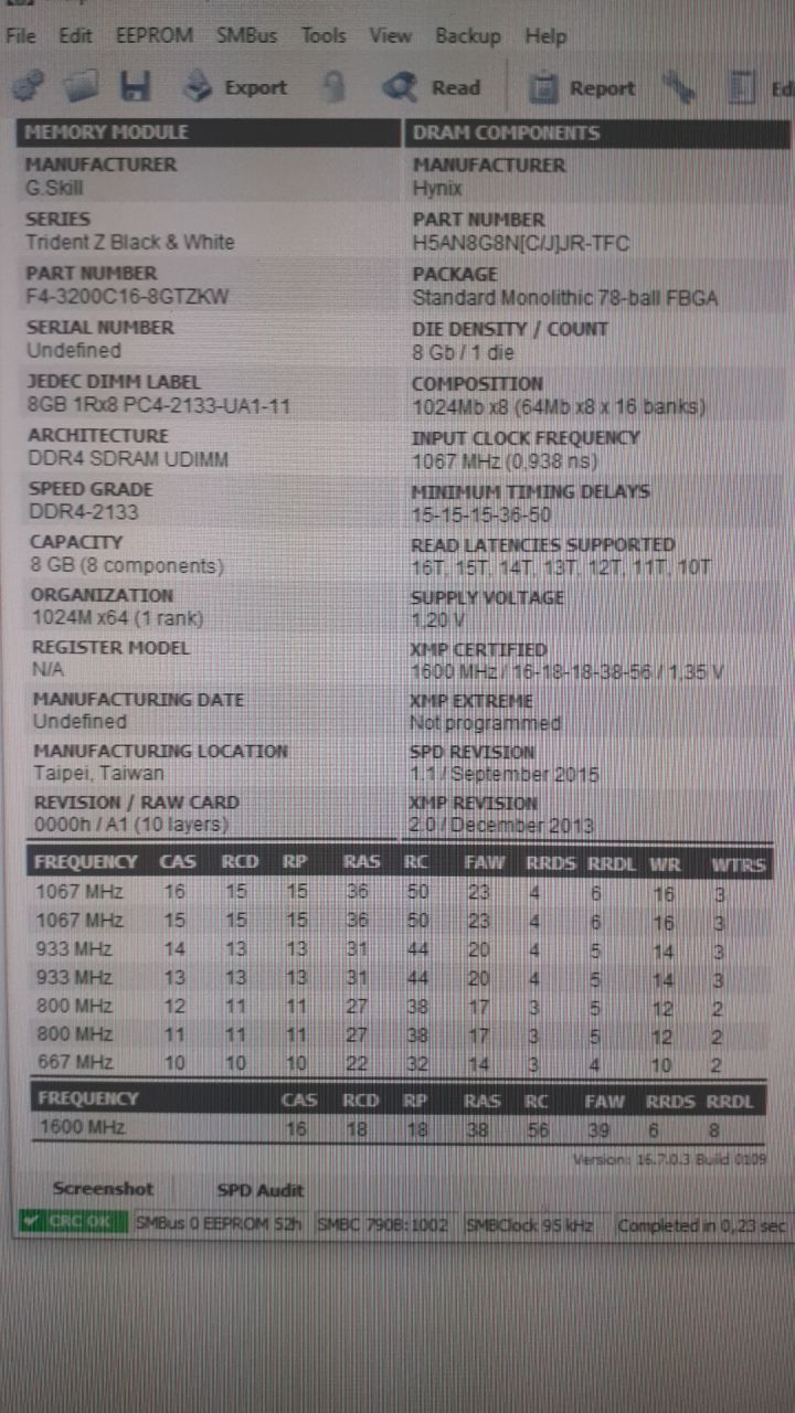 Skawarrior Я почитал про твои плашки. По маркировке внизу из ZT у тебя Samsung B-die. Но SPD зашит как для микронов. В пользу B-die могу сказать, что таких "ровных" таймингов на микронах (даже самых крутых) нет, с таким RFC точно (можно посмотреть по любым результатам разгона микронов). Поэтому скорее всего корсары накосячили и зашили неправильное SPD. Да и хорошо.. Samsung b-die лучше.