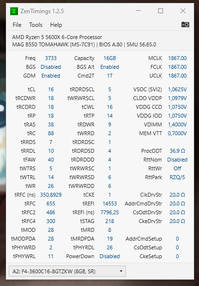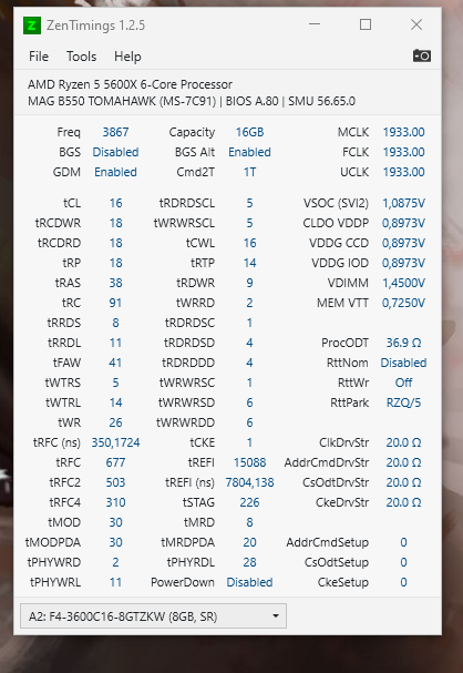 доброго времени суток. имеются такие плашки, всяко разно пытался согласно шапке топика завести их на 3800, но ни в какую... драм калькулятор как я понял тоже бесполезен, ибо все под копирку скопировать с него не дает шанса даже на запуск... проц 5600х, мать b550 tomahawk, плашки в спойлере последний успешный пресет, который выставлял