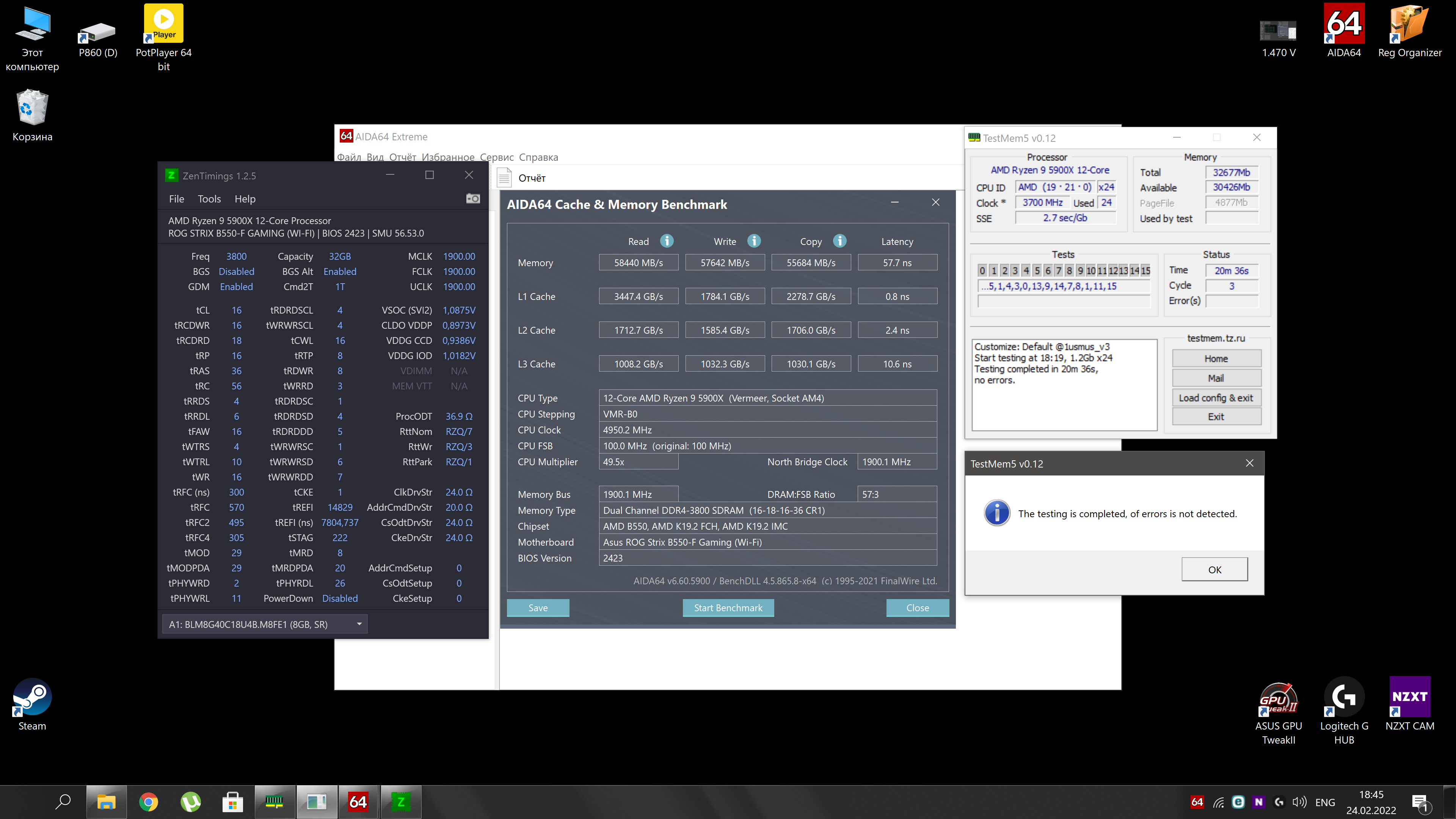 Доразогнал в текущем порядке установки планок. Прошел Мемтест 1100% ночью, ТМ5 @anta777 Extreme1 проходит.