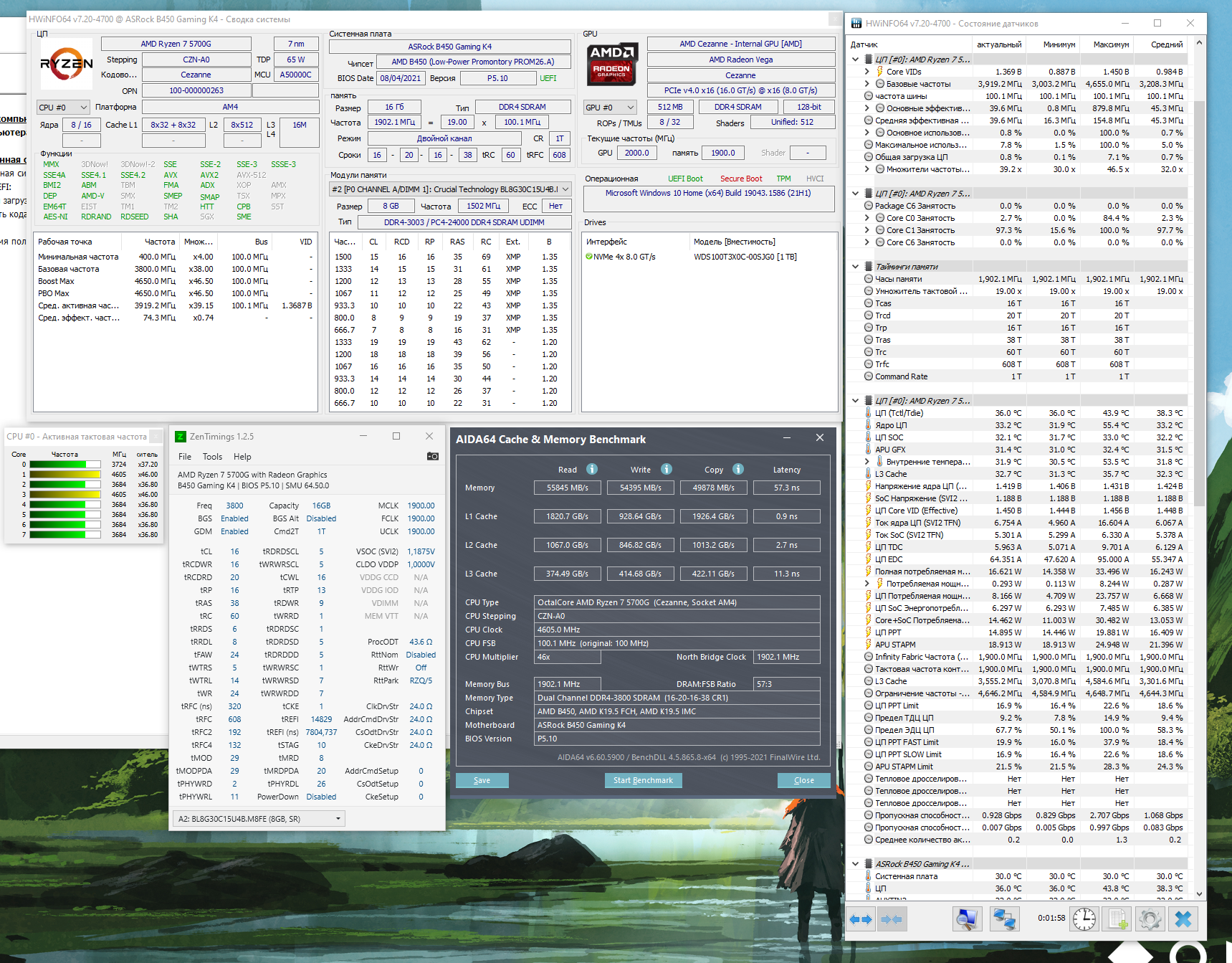 GFK Вот пример разгона похожих планок. Не знаю кто это, но винда русская (Hardware_poni), может даже с этого форума, попробуйте 4200 с его таймингами и напряжениями/сопротивлениями, хотя tRAS я бы 42-44 оставил. Может еще кто подскажет тут. https://imgur.com/WQGEl7S https://docs.google.com/spreadsheets/d/ ... =445726184