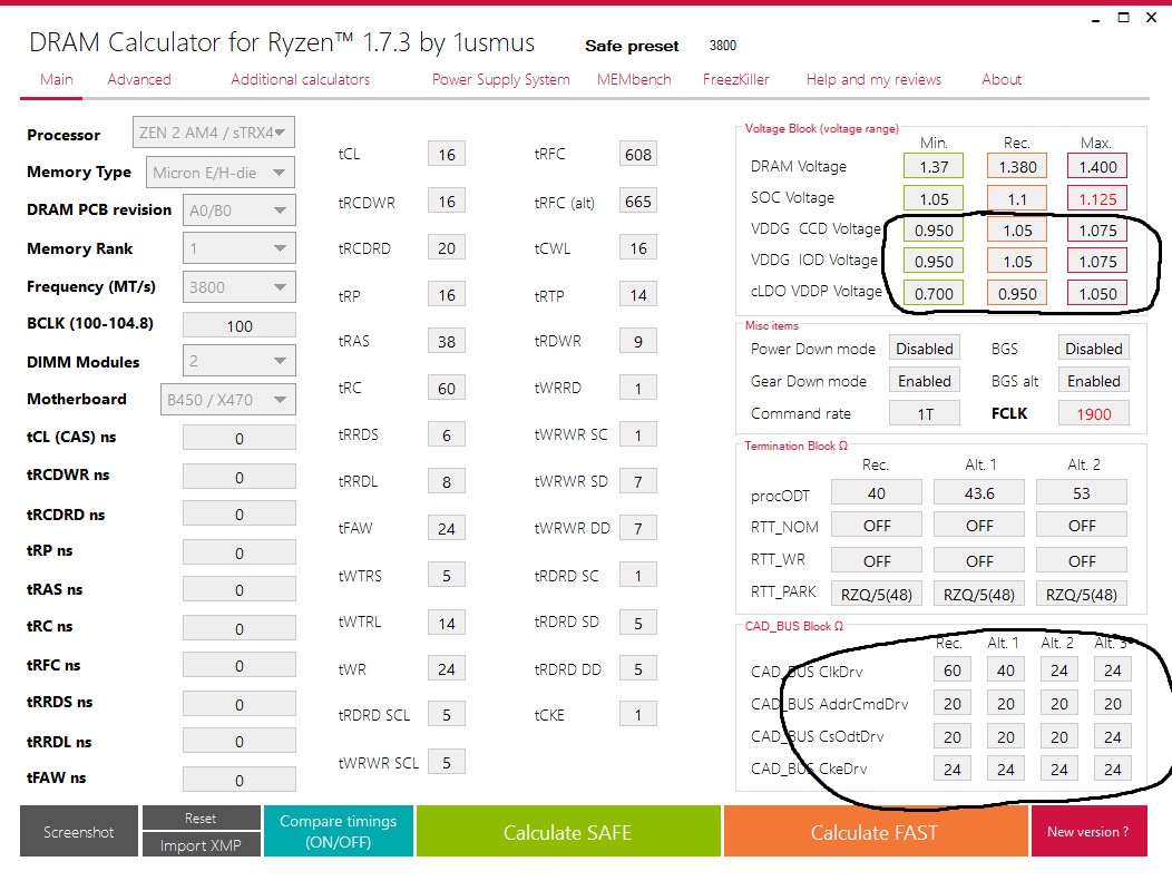 vol2008 Спасибо за помощь. А как теперь дальше ? стоит увеличить частоту 4000 ,4200 или лучше оставить 3800? Основной вопрос: я на данном этапе ввел только первички и пару вторичек, soc, dram, fclk. Стоит на данном этапе прогнать тм5 1usmus v3 или экстримом ? Остальное данные из калькулятора пока не вводил, оставил в авто как есть. Черным маркером отметил ( в спойлере) что не трогал. Что из этого стоит ввести обязательно и как сразу или постепенно? С чего начать?