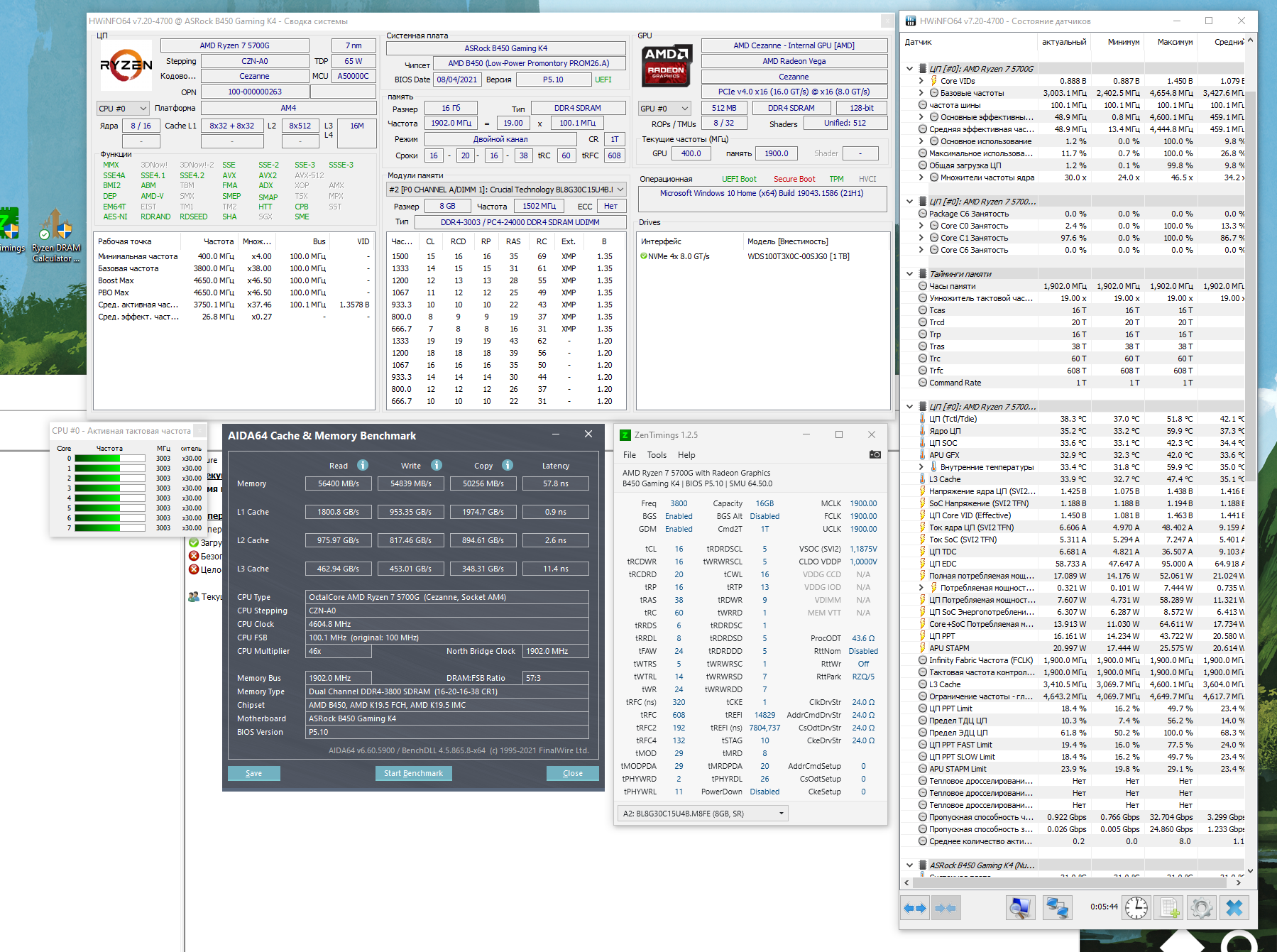 Сделал так. Загрузился, запустил TM5 1usmus v3 но сразу пошла волна ошибок с последующим зависанием и перезагрузом. Вернул свой сохраненный конфиг с прошлого сообщения.