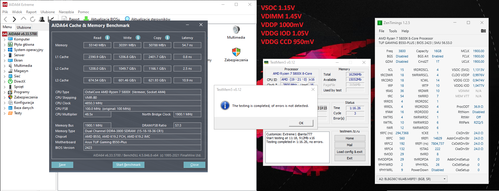 Методом научного тыка выяснил, что на своем 5600 могу стабилизировать шину на 1967, вместо "базовых" 1900 (которые берутся без вмешательства) путем одновременного увеличения pll1.8 до 1,92в и напряжения SoC в диапозоне 1,1438-1,1563в (по мониторингу, в биосе 2 значения подходят - 1,160 до 1,166в, если меньше - есть несколько ошибок за 10 проходов ЛинХ, если больше - катастрафически возрастает число ошибок). Так же, предварительно, при более высоком pll1.8 окно стабильности для SoС вольтажа немного сдвигается вниз. Стоит так делать? Или такие значения напряжений вполне норм на постоянку? Стоит пробовать ниже SoC вольтаж выставлять, но с большим LLC? Можно попробовать это отследить по бенчам?