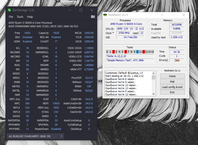 Если tRDWR 8 старта нет, только сброс биос. tWR 12 - tRTP 6 нет ошибок, только с обдувом, без обдува, ошибка примерно через 30 минут экстрима. Так никто и не ответил: