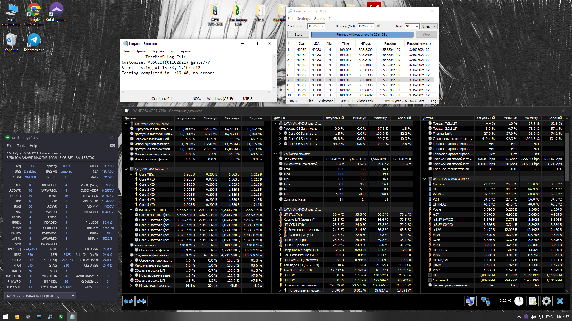 7. При желании протестировать память избыточным тестом в TM5 с конфигом 1usmus_v3 меняем количество 3-х циклов в "mt.cfg", "cycles=3" скажем на 8 или более