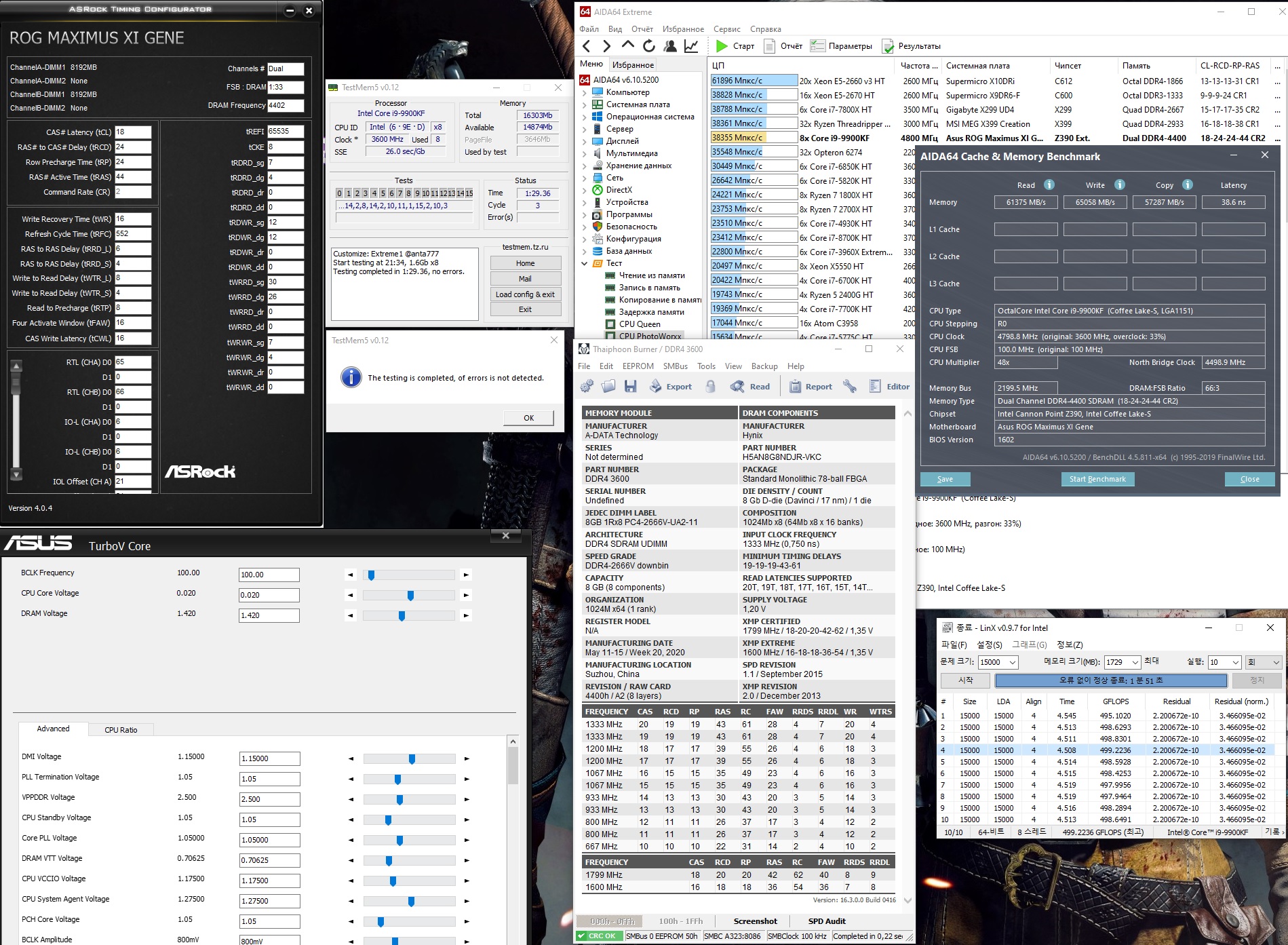 Дотестировал я Hynix и скажу, что D-Die у них реально интересные чипы. Но на частотах до 4200 уступают E-die по первичкам на 1-2 шага. На постоянку оставил 4400 при 1,42в стартует вплоть до 4800, но IO SA дикие, на постоянку такое не оставишь.