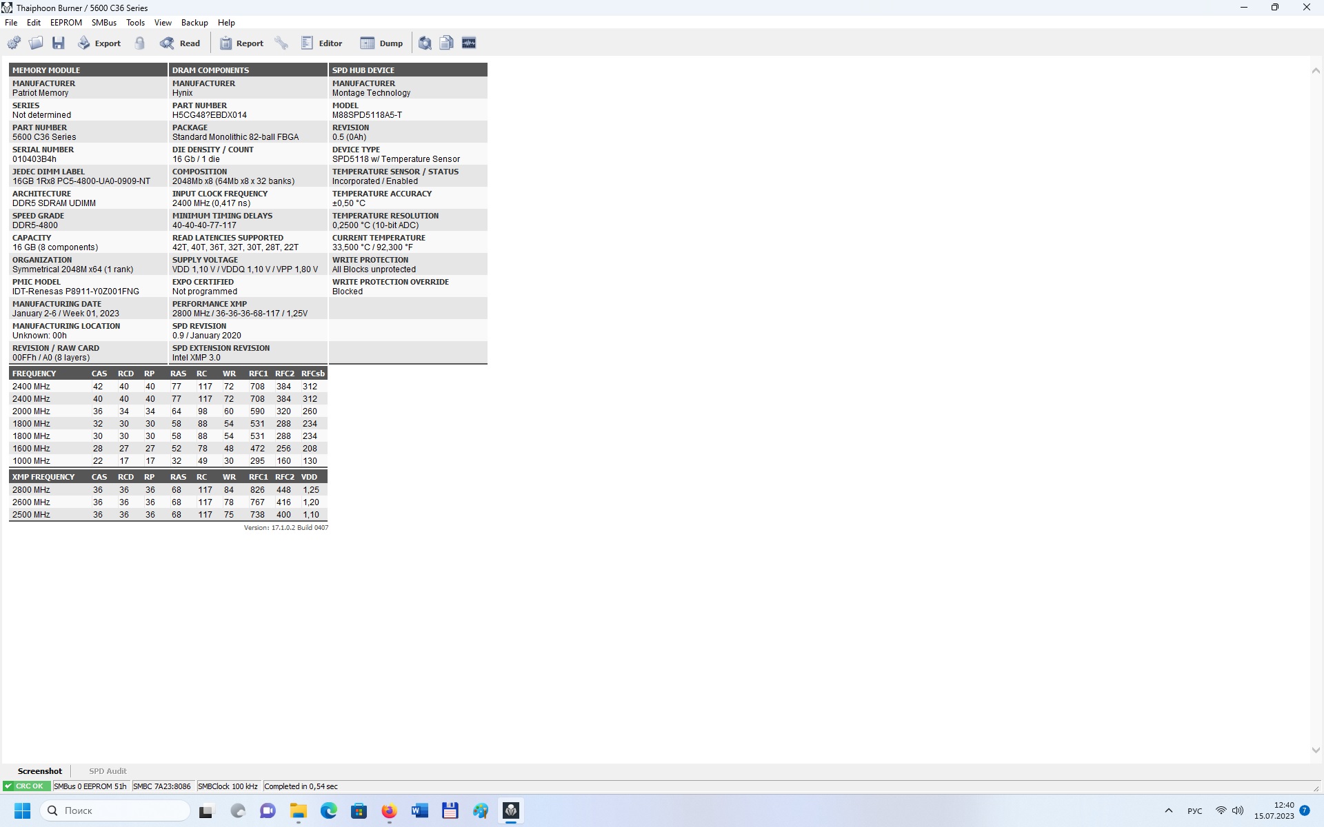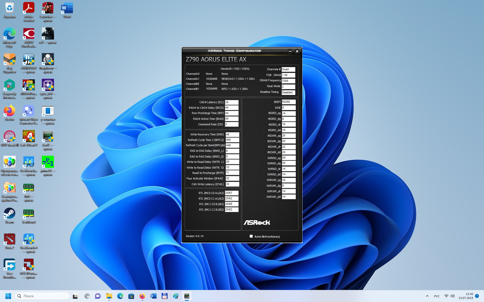 Спасибо, попробовал разные методы, нигде не показывает. Учитывая, что завелась на 7200, скорее всего это hynix a-die. Может кто-нибудь скинуть настройки для их разгона