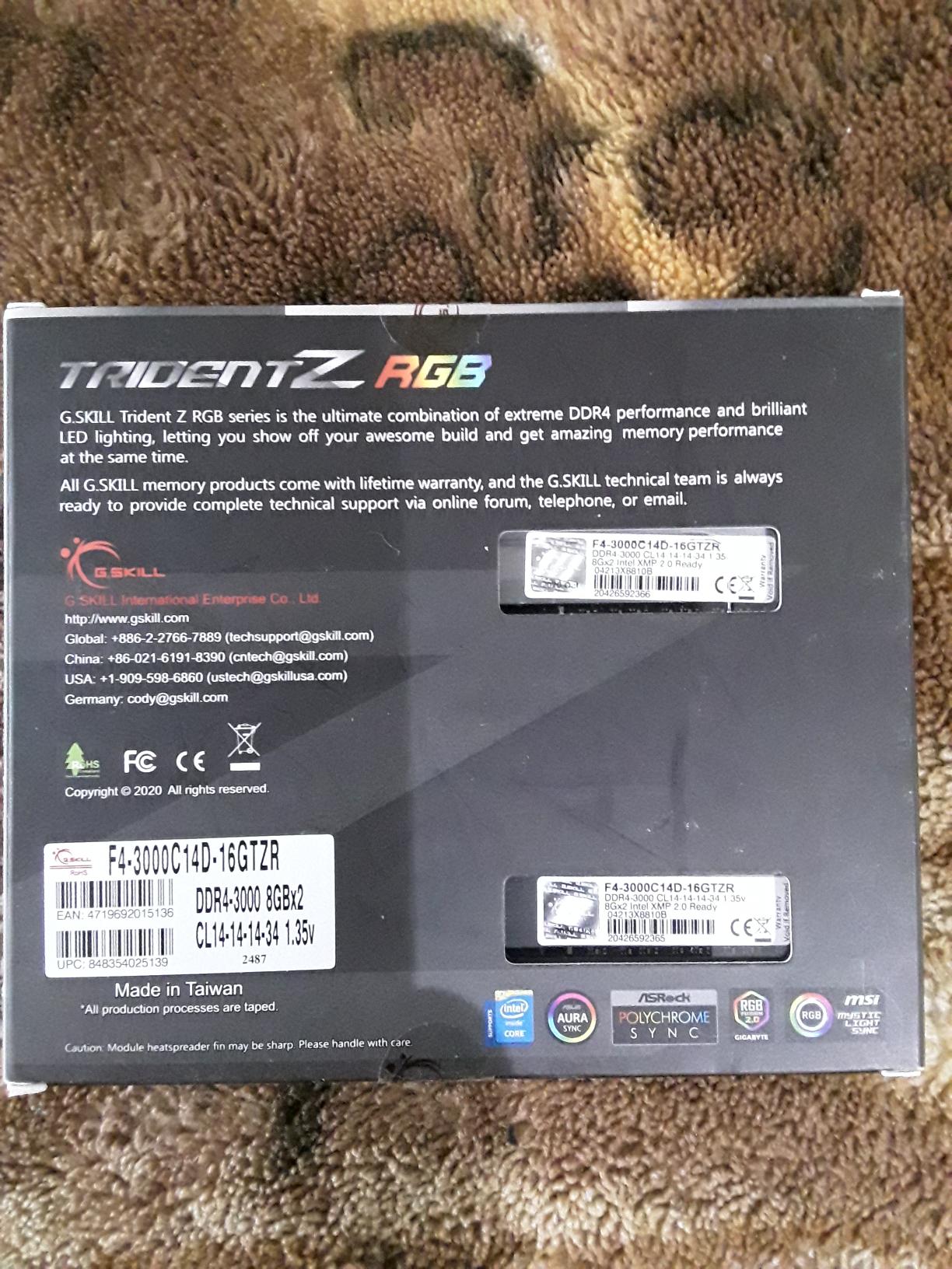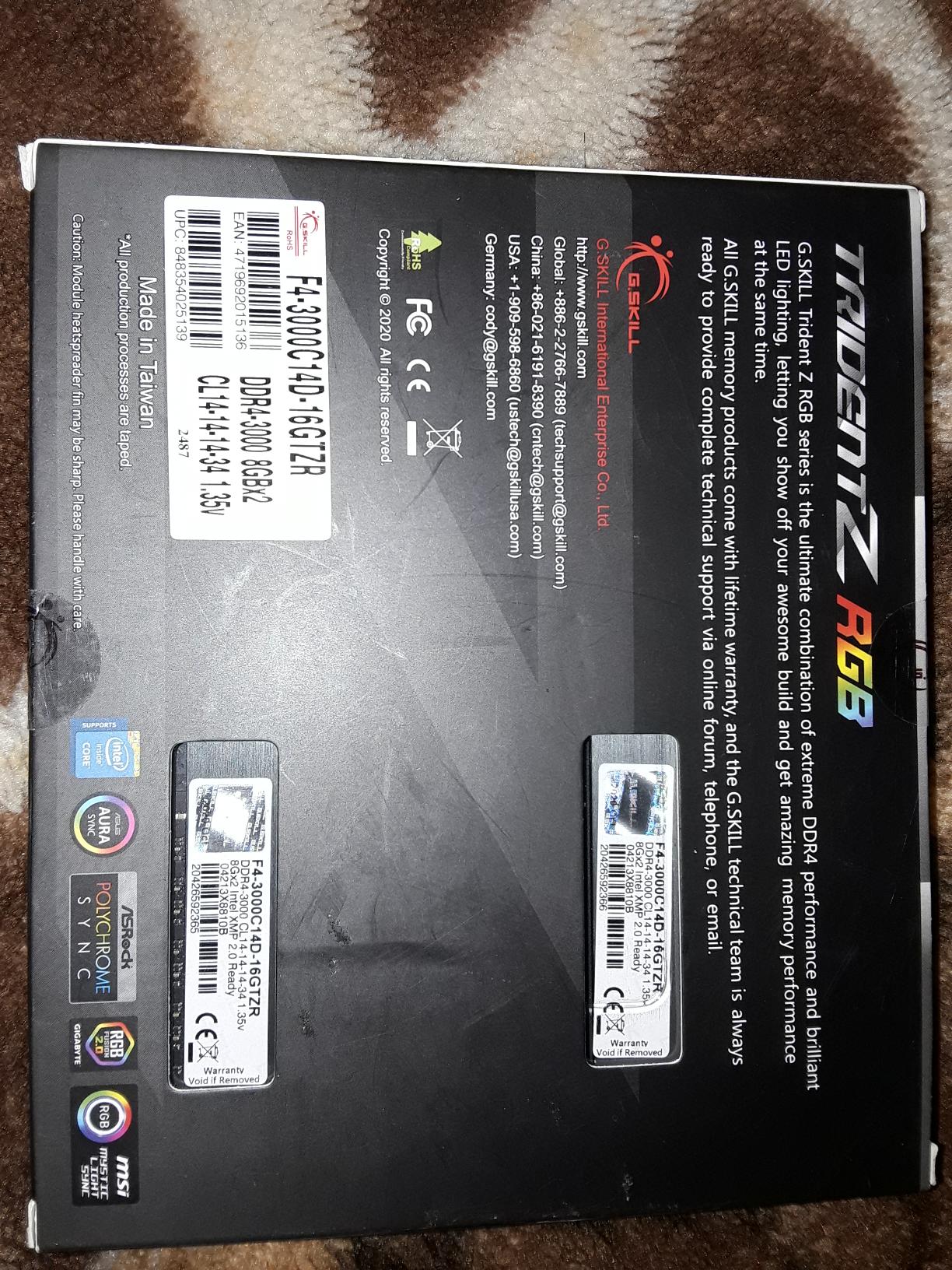 Подскажите, пожалуйста, есть подозрительно выгодное предложение на память F4-3000C14D-16GTZR. Никогда с этой памятью дел не имел. Интересует есть ли среди них "Паль"? И как можно отличить оригинальность продукта по заводской упаковке к примеру по получении на почте?Фото продавец скинул. Можно сделать какие то выводы?