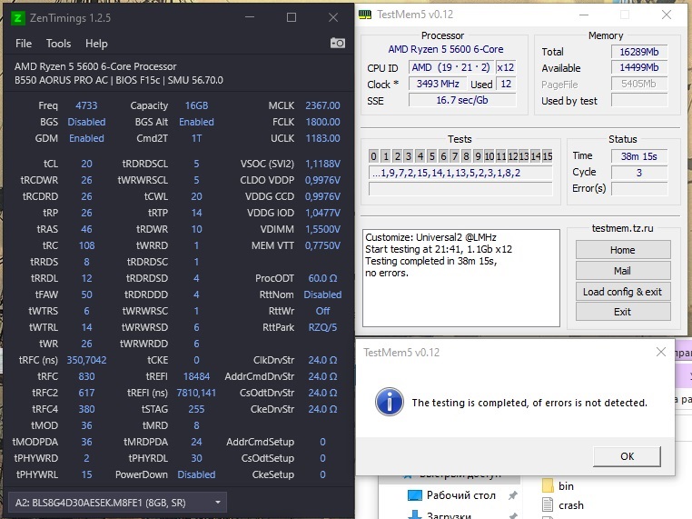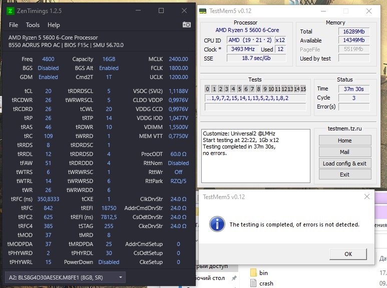 У кого есть опыт разгона памяти с чипами nanya на райзен 3000? у меня память с али gloway type b работает на частоте 3600 с таймингами 16-19-17-17-36 crt1, напряжение 1.35. Если пытаюсь настроить вторички, в тестмем5 сыпятся ошибки.
