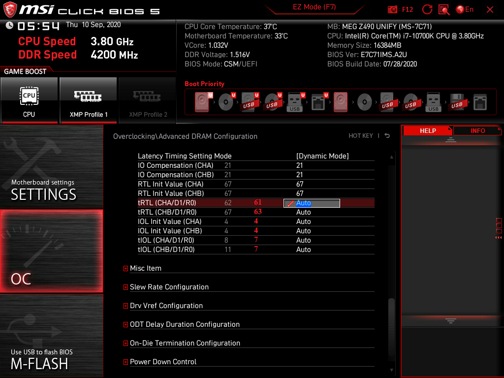 enot52rus, вот видишь, уже лучше. Сейчас протестить на стабильность. Затем WTR=3, WRRD_dg=25 и тестить стабильность. Потом WTR_L=6, WRRD_sg=28 и тестить. Финал tRFC снижать. Но проще tRFC=328 и искать напряжение минимальное, на котором Extreme1 пройдёт. А уже потом снижать tRFC кратным 8. Надо помнить, что после изменения таймингов, нужно Fast Boot=Disabled и повысить IO/SA во время тренировки. No training - не тренировать память сделать после найденной стабильности таймингов. Затем крутить IO/SA в линкс 0.9.7 35K или 42K. Последним - разгонять проц. Richidaru, проделать, как на скрине ниже, а тайминги все выставить, как у enot52rus.