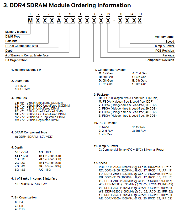 33A = Micron/Spectek A die 33B = Micron/Spectek B die 10B = Samsung B die 10C = Samsung C die 10D = Samsung D die 10E = Samsung E die 209 = Hynix AFR 211 = Hynix MFR 20A/21A = Hynix AFR 20C/21C = Hynix CJR 20D/21D = Hynix DJR 20J/ 21J = Hynix JJR 50A/ = Nanya A die