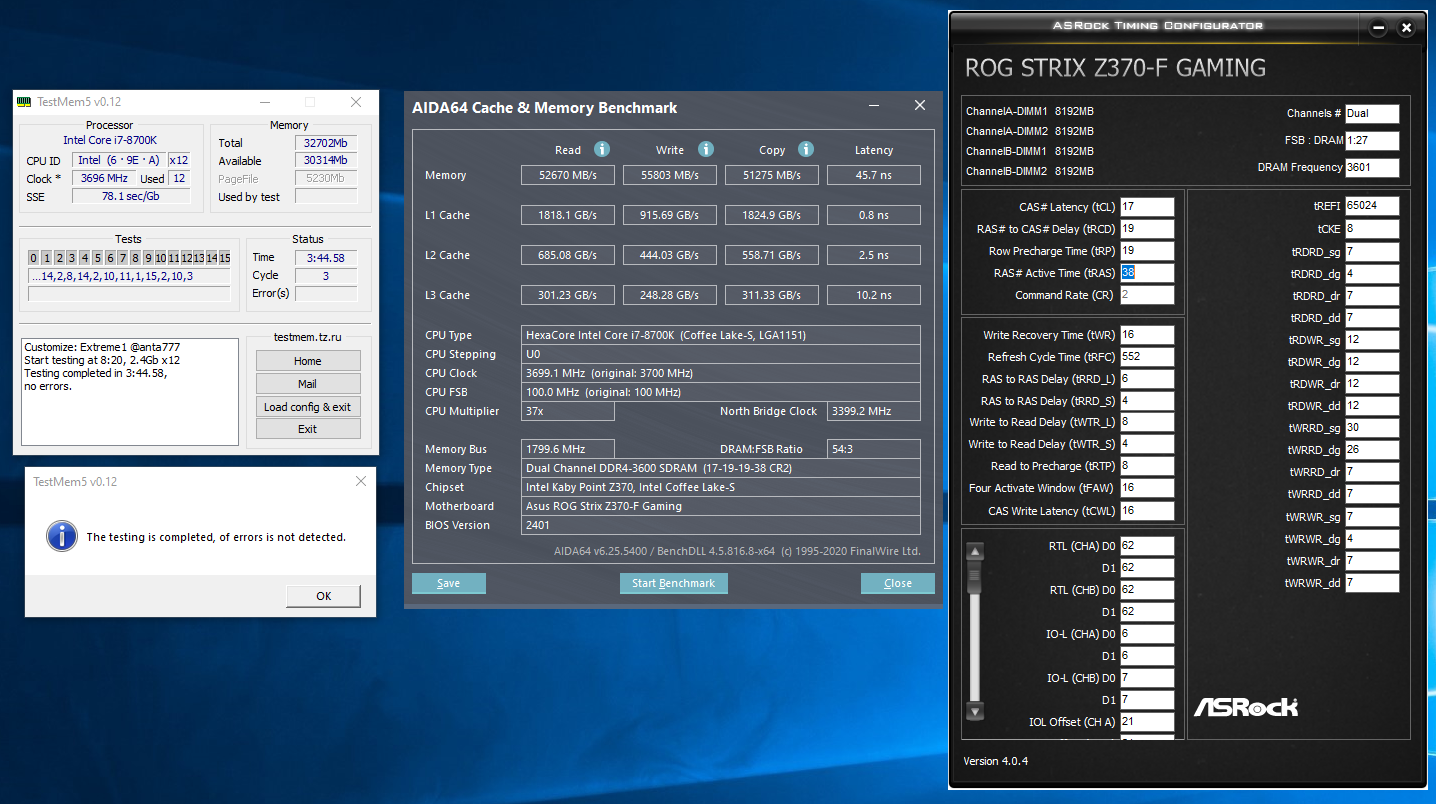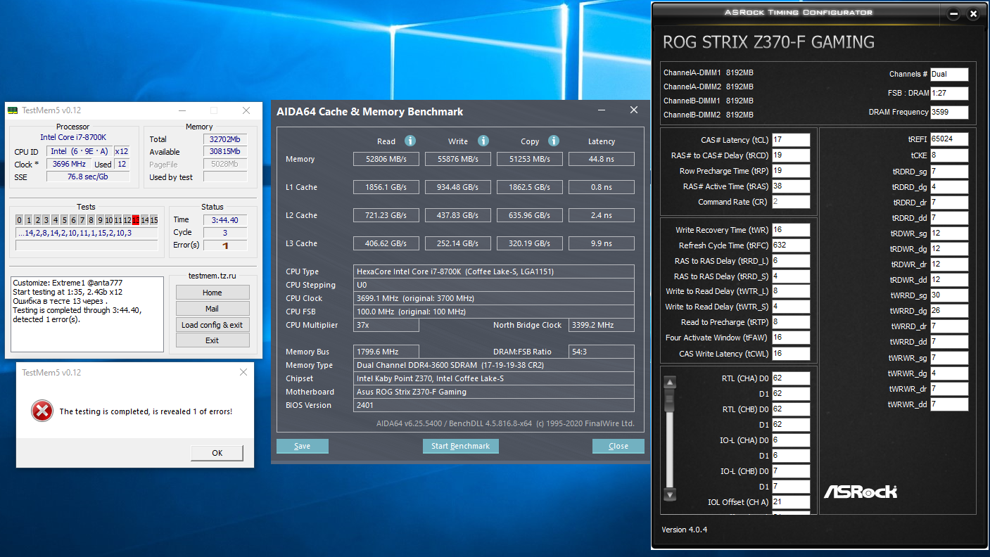 Тут палка с двух концов... У меня ж asus z370 f gaming, там vrm такого количества проходов не выдержит без пониженной температуры воздуха и обдува задней части материнки... а в таких условиях память уже сама по себе холоднее будет, а значит и более стабильной, а это уже тест в нереальных условиях... разве что частоту процессора понижать до 4.8... да и я ж писал, вольтаж подымал на озу, тож самое вышло, ошибки при 60 градусах на радиаторах озу