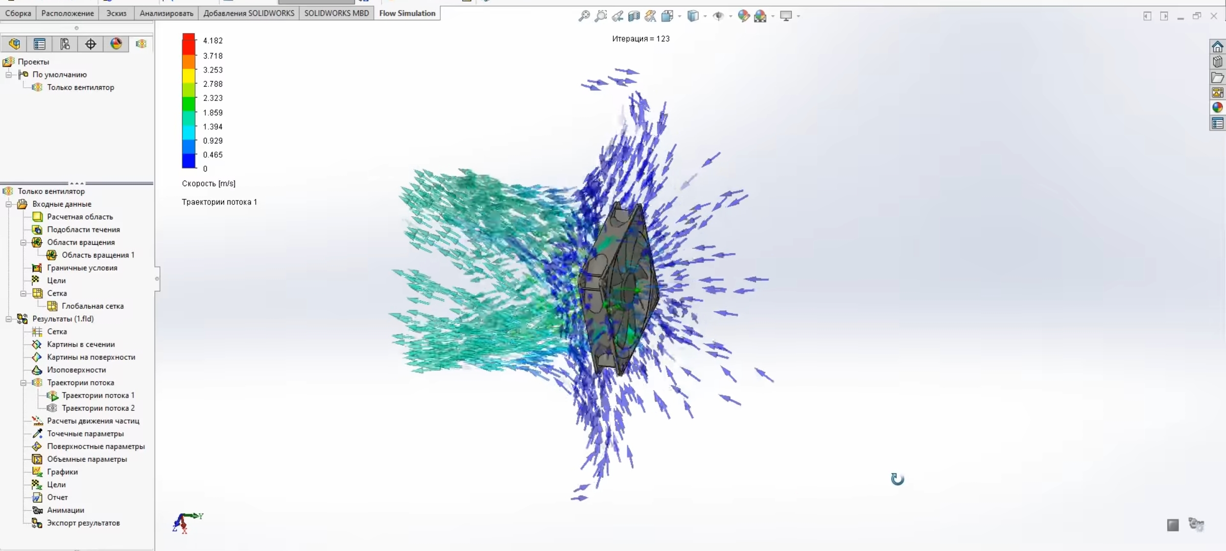 Видите красивую мертвую зону в области ротора? Потоки закручиваются и стремятся вылететь по контуру за пределы рамки направляющей. То же самое происходит и у вас, ровно над ротором мертвая зона, куда воздушные потоки не распространяются.