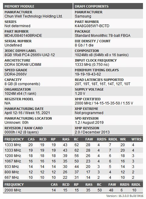 Для вариантов 2x8 Gb так же можно рассмотреть варианты покупки: - Patriot Viper Steel 4000 и 4400 Мгц (маркировка PVS416G400C9K и PVS416G440C9K), Patriot Viper RGB 4000 Мгц (маркировка PVR416G400C9K). XMP профиль в этих комплектах должен быть именно 19-19-19-39. - Team Group T-Force XTREEM с XMP 4000, 4133, 4300 и 4500 Мгц (маркировка начинается с TXKD416G4, в РФ только на Авито, либо заказывать с США). На авито брать можно модули с датой производства от 2019 года (дата у G.SKILL Trident Z указана на голограмме на каждой планке "2020 sep" - сентябрь 2020 года). Брать старый B-die за цену Яндексмаркета не советую. Перед покупкой нужно зайти на сайт Бидайфаиндер и удостовериться, что в рассматриваемых модулях действительно B-die: B-Die Finder, так же можно проверить модули по маркировке на hardwareluxx.de. Частота памяти 4000 Мгц и даже 4600 Мгц не является гарантом того, что чипы окажутся именно B-die, уже давно выпускаются модули 4400 Мгц и выше с чипами hynix D-die (например Thermaltake TOUGHRAM ROO9D408GX2-4600C19A, брать их не стоит). Так же косвенным фактором наличия чипов B-die являются тайминги tRCD и tRP - у B-die они отличаются на +1 (редко +2) или равны tCL, например 14-14-14-34, 15-16-16-36 или 17-18-18-38. Если вы видите память 16-19-19-38, то это скорее всего не то, что вы ищите (например тот же Thermaltake TOUGHRAM 4600 Мгц 19-26-26-45). Сейчас на рынке представлены комплекты памяти с чипами Samsung B-die на примере G.SKILL F4-4000C16D-32GTZR с таймингами по XMP 16-19-19-39 и напряжением 1.40V, но покупать такое и рассчитывать на разгон памяти без "отвала tRCD" к примеру 16-16-16 или 16-17-17 я бы не стал. В пример могу привести комплект G.SKILL F4-4600C18D-16GTZR с XMP 18-22-22-42, который на заявленной часте в разгоне работал только с tRCD = 20.