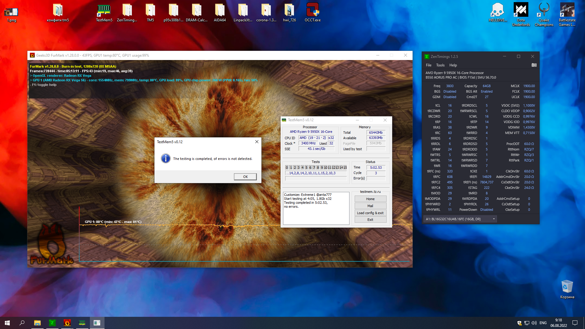 Так у меня вот с этими настройками tm5 проходит, а если меняю на 1Т, то ошибки. Куда ужимать сильнее то, если уже сыпется. Или я вас не правильно понял, надо включать gdm при 1T обязательно? Я сейчас, конечно, попробую с 1T, gdm off и RCDWR=RCDRD=20, но чет сомневаюсь...