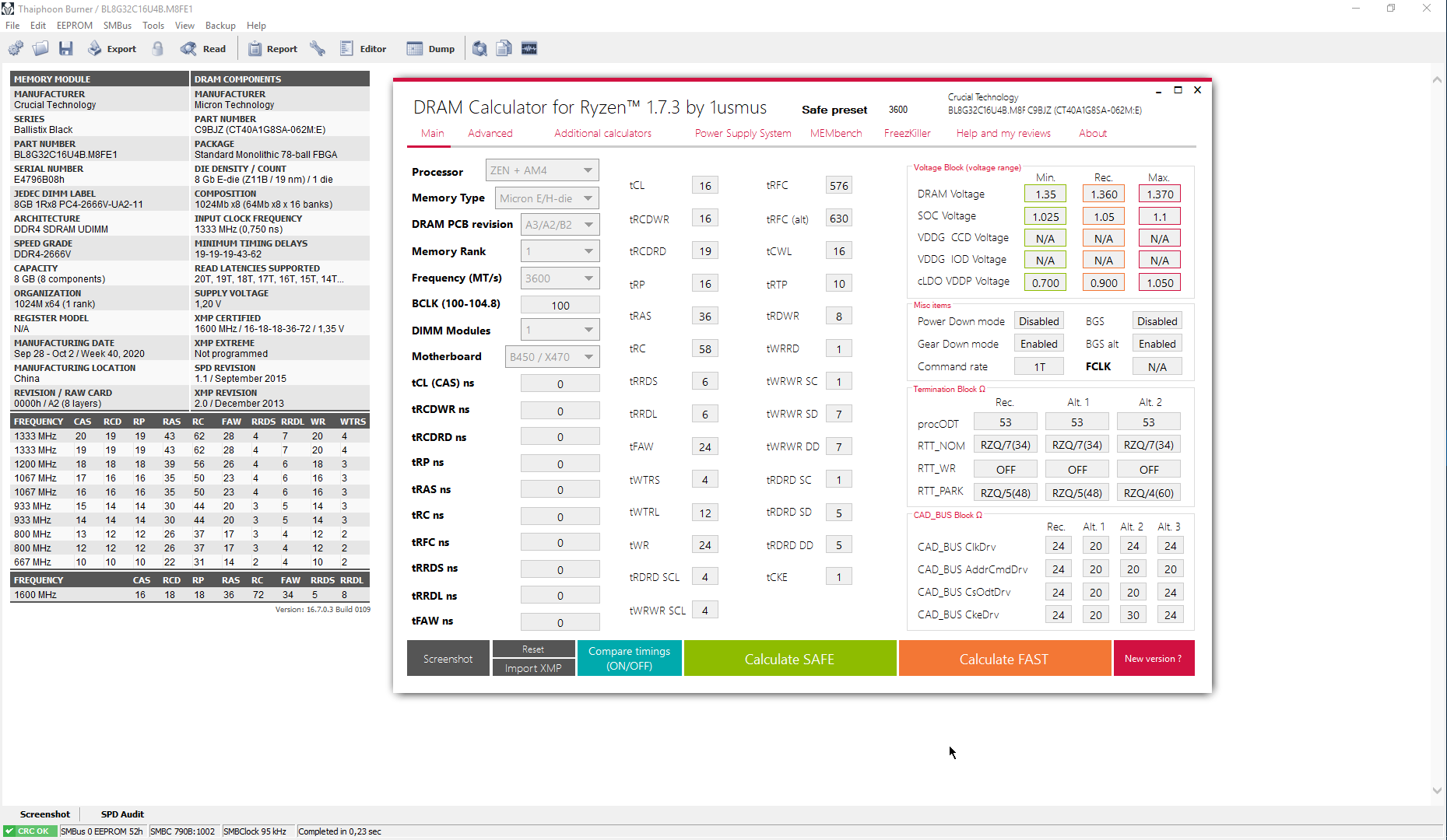Всем привет, имею Ryzen 7 2700 Stock/ B450 a-pro max/ Crucial 16 GB (2x8GB) DDR4 3200 MHz Ballistix Black озу работает в данный момент на профиле xpm 3200 записал все значения в калькулятор в соответствии с тайфун программой правильно ли я ввел в калькулятор? если да то можно пробовать разгонять сразу на 3600 частоту? либо лучше идти с меньших чисел, что-то типа 3333 и пошагово повышать?