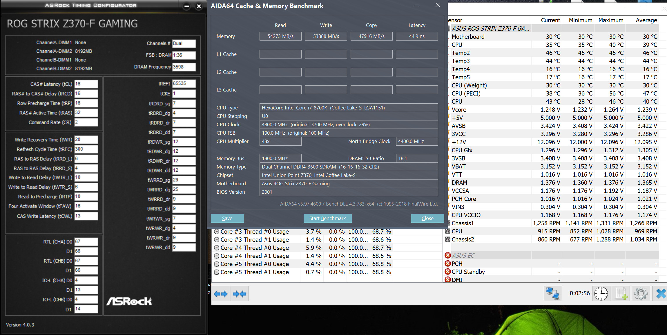 Очень хорошо. Просто превосходно! Теперь пройти тесты на стабильность и можно пользоваться. 155,(5) нс RFC - это почти идеал. Теоретически для вашей системы tRFC должно быть больше равно 256 тактов. Что за память у вас ? Еще можно попробовать снизить tRRD_L до 4 (сделать равным tRRD_S).
