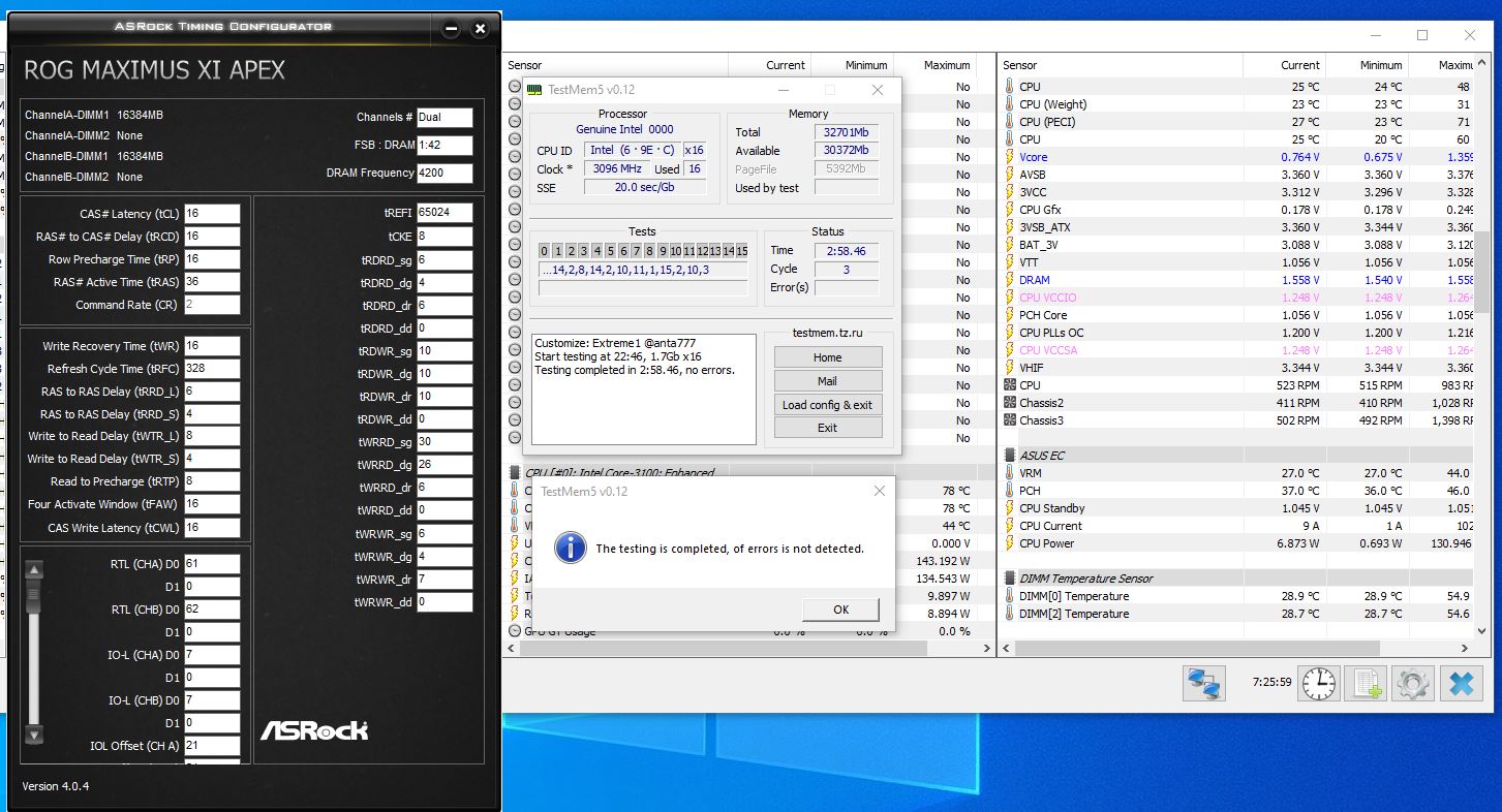 Добрый день! Прошу помочь. RDWR, tWR - ниже уже не идут TRFC - 320 ошибки в экстрим тесте tREFI - 62400 - тоже с ошибками RDWR - 10 ошибки f4-3200c14-32gtzr