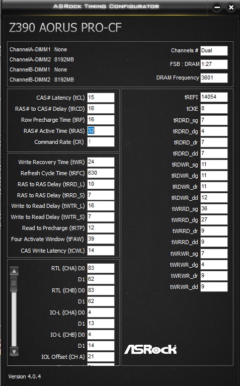 Есть мать z390 aorus pro + 9900k + ripjaws 3200cl14, смог добится 15-16-16-32 3600 на 1.4V, лучше не получается. Что я мог забыть подкрутить чтобы добится результата лучше? Какие значения можно получить на этой памяти и мп?