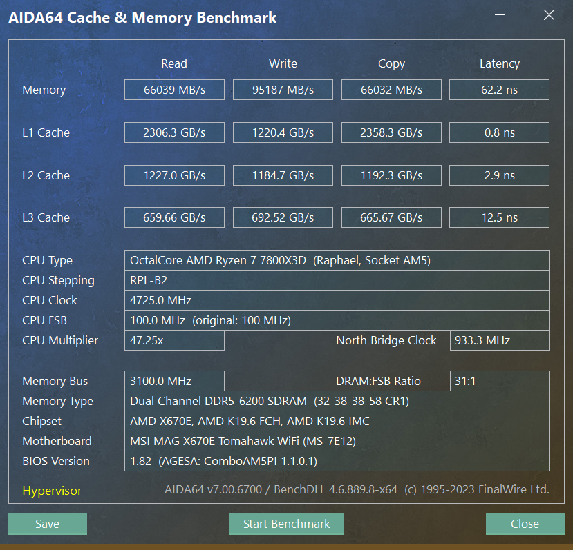 с двурангами 2х32Гб жесть полная, я сам намучался, память из подписи на hynix M-dia с XMP 6000(30-40-40-96), в общем эта б-ять прекрасно работает на 5600cl28 с хорошо ужатыми вторичками, но начиная с 6000 нестабильна - периодически синьки при загрузке винды после холодного старта, хотя без проблем заводится и на 6400 (1:1), на 6000cl30 и 6200cl32 проходит без ошибок многочасовые тесты, включая TM5(anta-extreme), стоит БИОС 7E12v14 (AGESA ComboPI 1.0.0.7c), сейчас прошью 7E12v182 Beta (AGESA ComboPI 1.1.0.1), может поможет