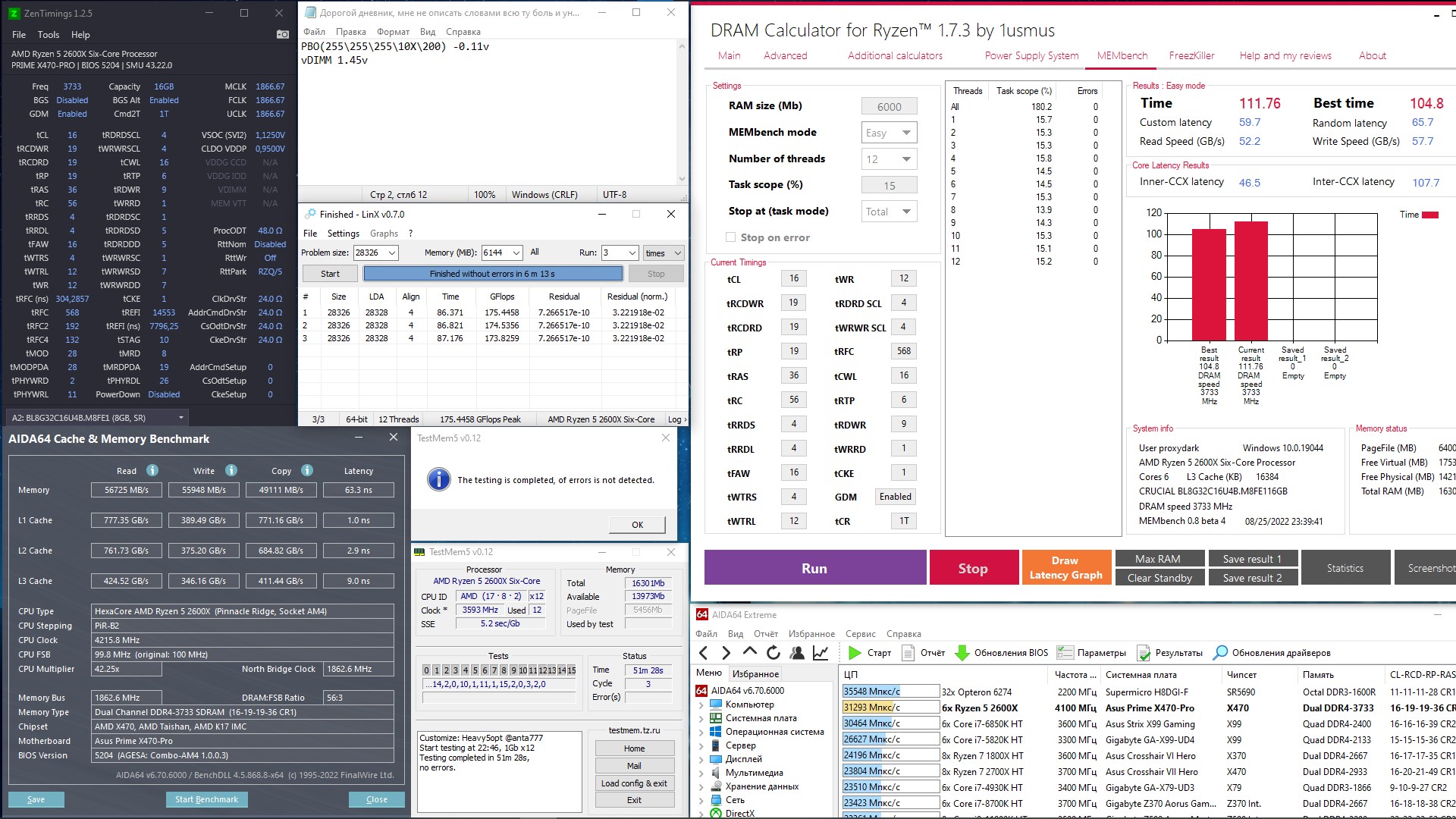 Здрасьте, это снова я. Всем спасибо за помощь, с проблемами разобрался. Прошляпил тот факт, что после 1800 нужно вручную менять частоту шины, сейчас все починил. Поправил немного вторички, скачал новый биос F61 AGESA ComboV2 1.2.0.3 B, память завелась на 4к. Прогнал 20 минут ТМ5, сейчас поставлю на подольше и побегу по делам. Вот только есть две проблемы: 1. Скорость чтения и копирования очень сильно упала. 2. Скорость Л3 кэша также упала. Видимо, я опять где-то что-то проглядел, памагити. Прикладываю скрин новых результатов и старые скрины, чтобы можно было сравнить скорость кэша.